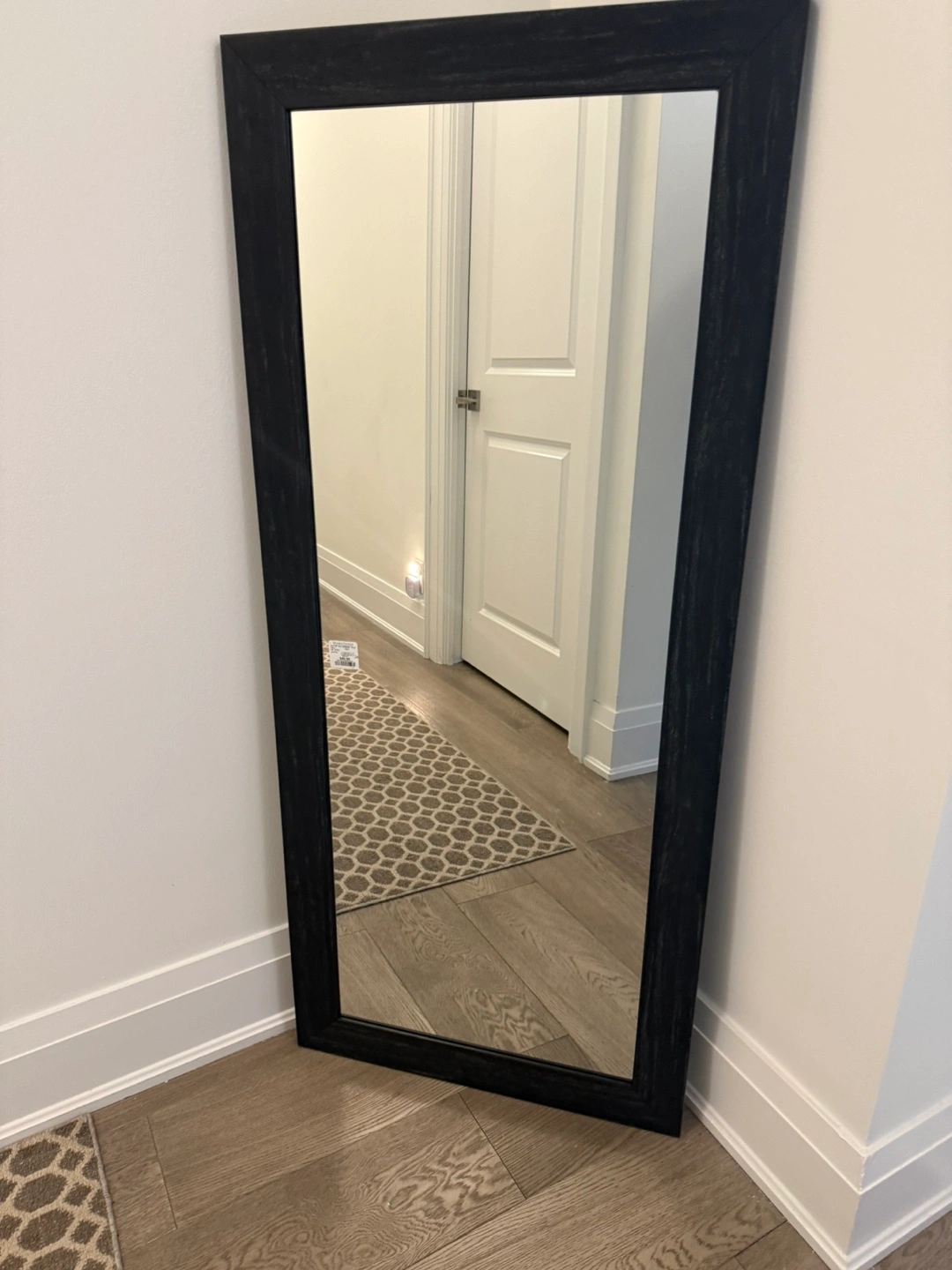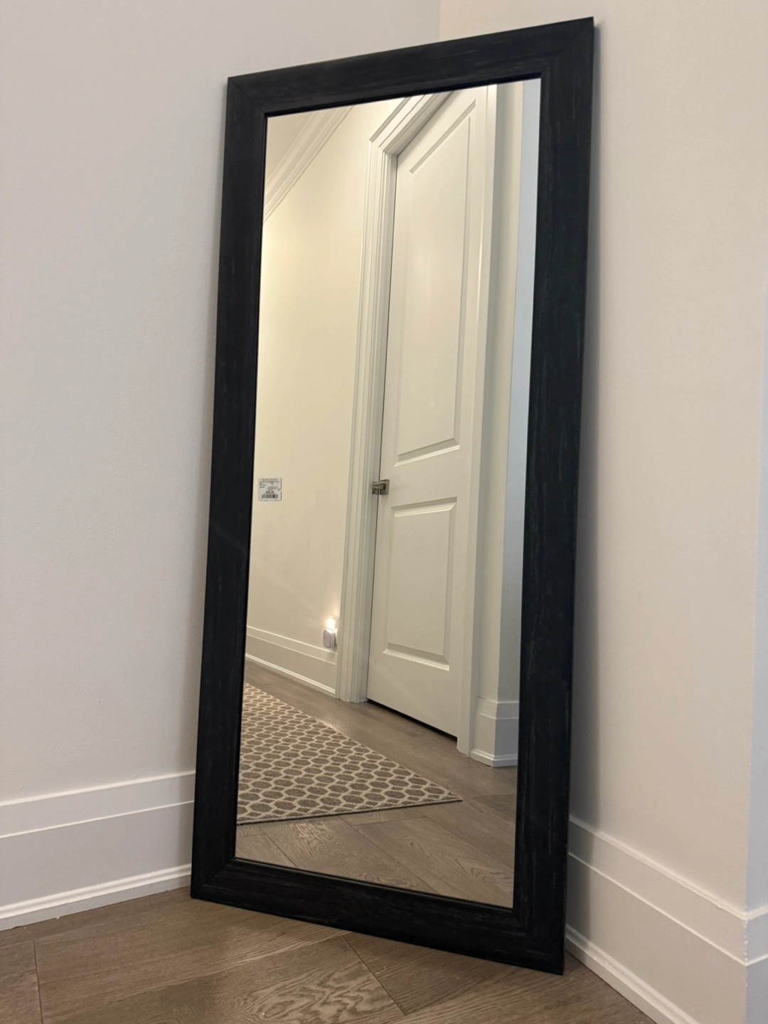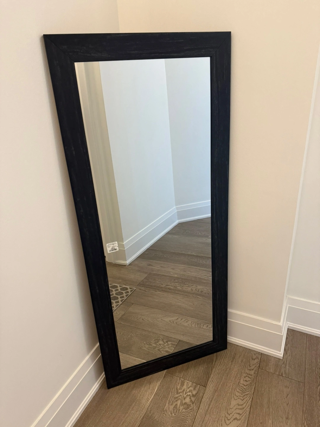 Selling a black framed wall mirror bought at HomeSense. Size - 23” x 53” (including frame) Frame is 2” thick. In perfect condition - no dents, scratches, chips
