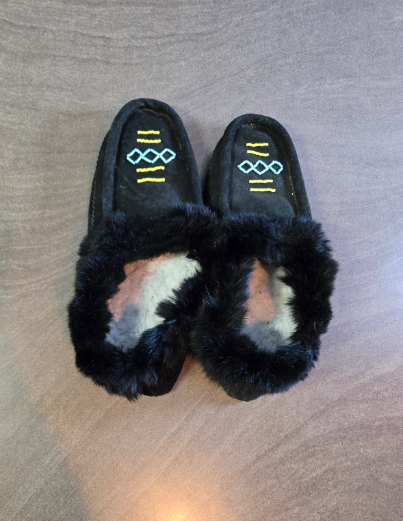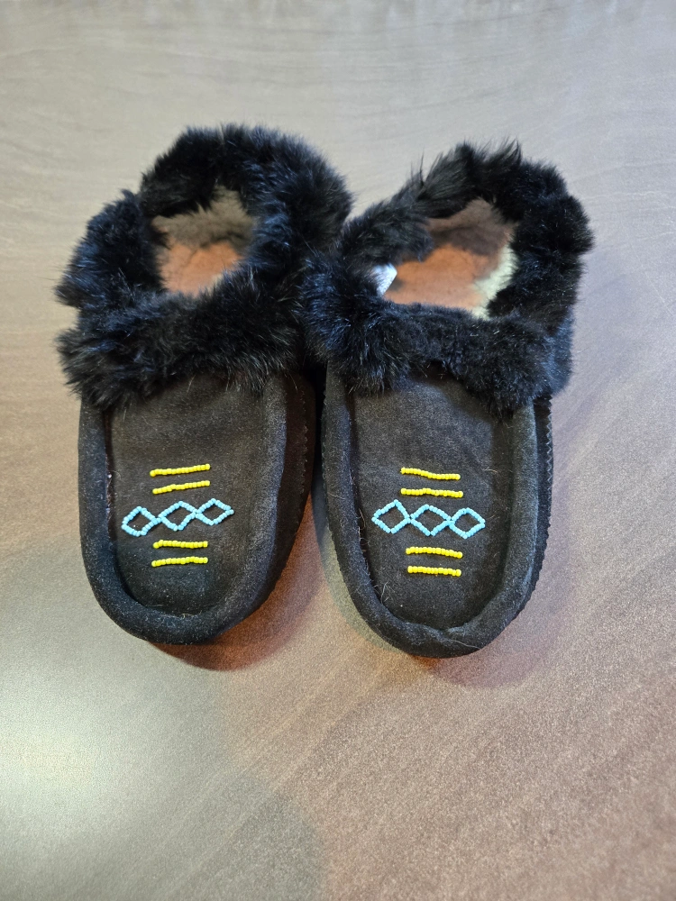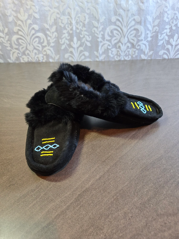 Great condition. Cozy black moccasins with fur trim. Size 10 and feature a unique beaded design. Perfect for keeping your feet warm. Cross-posted. 💥If you have a moment please have a look at my other items for sale.