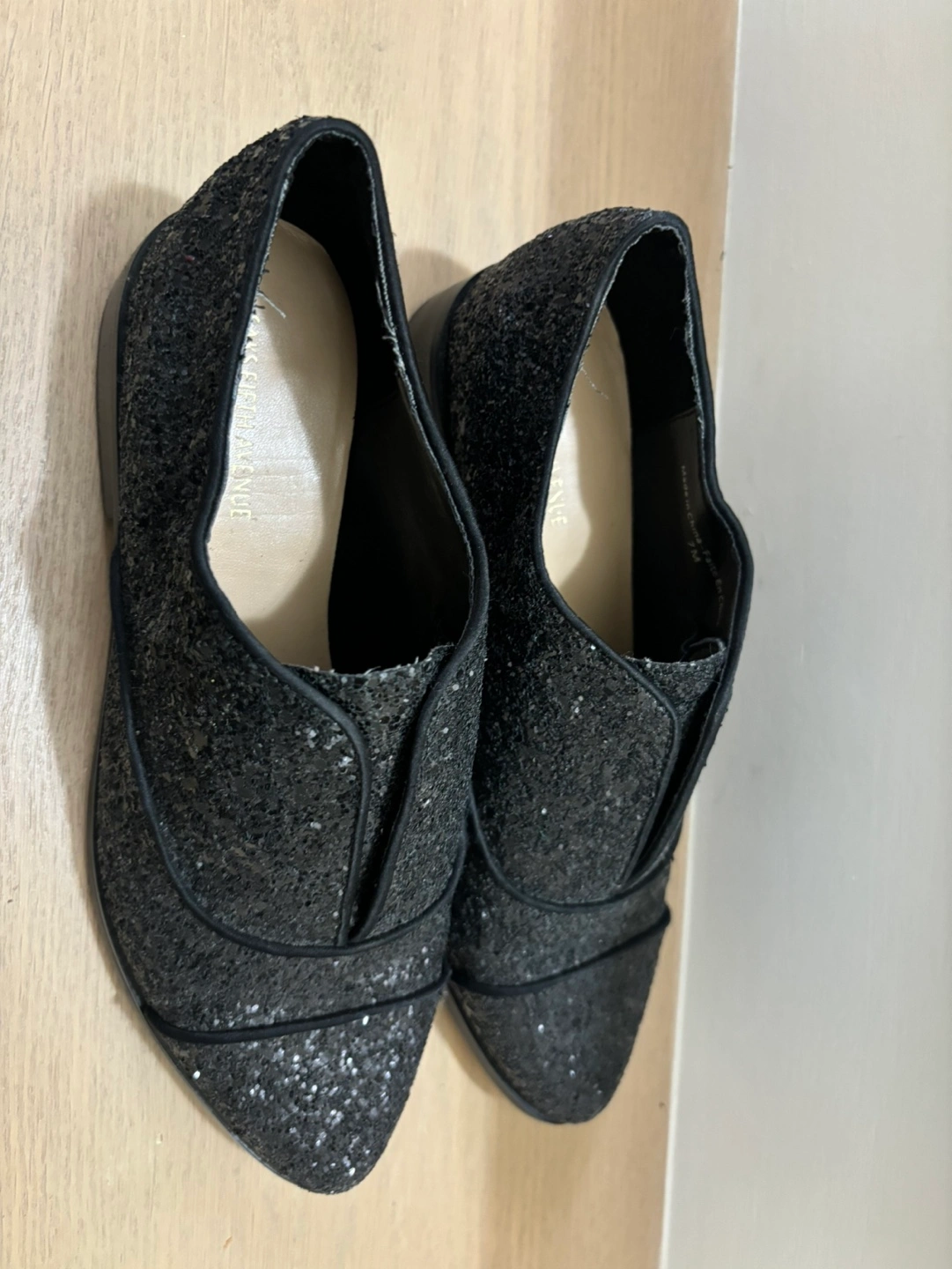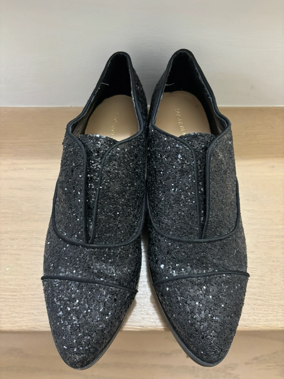 Black glitter oxfords with a pointed toe. Size 7M. Perfect for holiday/New year Worn for a photo shoot.