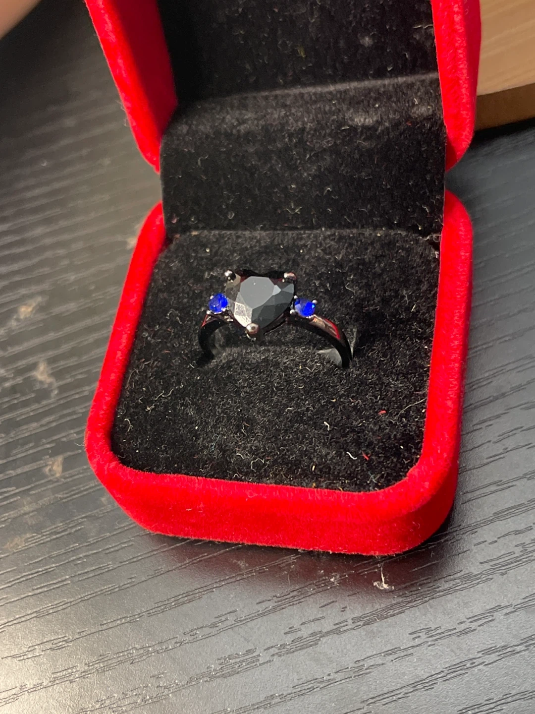 Selling a cute black heart ring with blue accents! It comes in a blue pouch I used the red container for stability perfect for gifting or keeping it safe. The ring is in great condition and ready for a new home