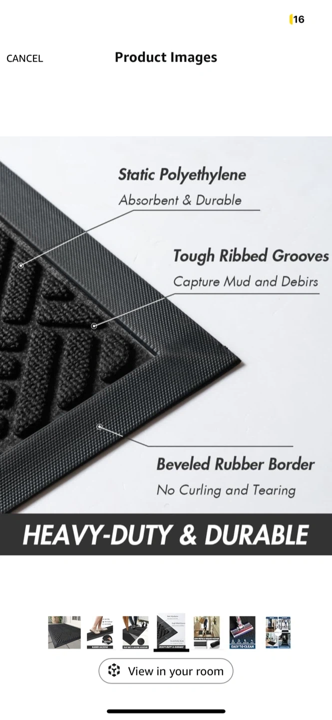 Looking for a durable doormat? This heavy-duty doormat is perfect for both indoor and outdoor use. It's made from static polyethylene, making it absorbent and durable. It also features tough ribbed grooves to capture mud and debris, and a beveled rubber border to prevent curling and tearing. Plus, it's easy to clean!