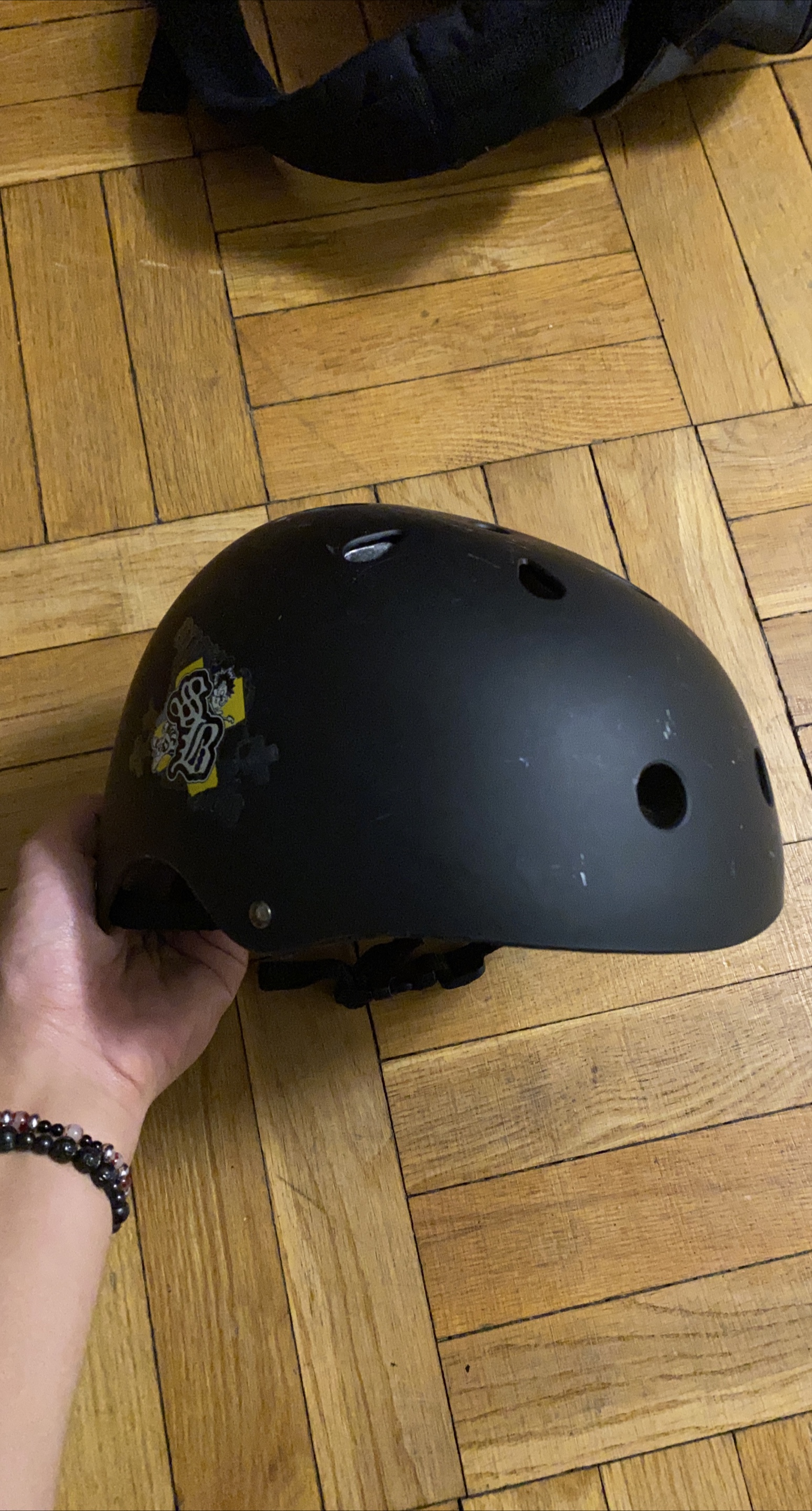 Selling a black helmet. It has a few scratches but is otherwise in good condition. Size M
