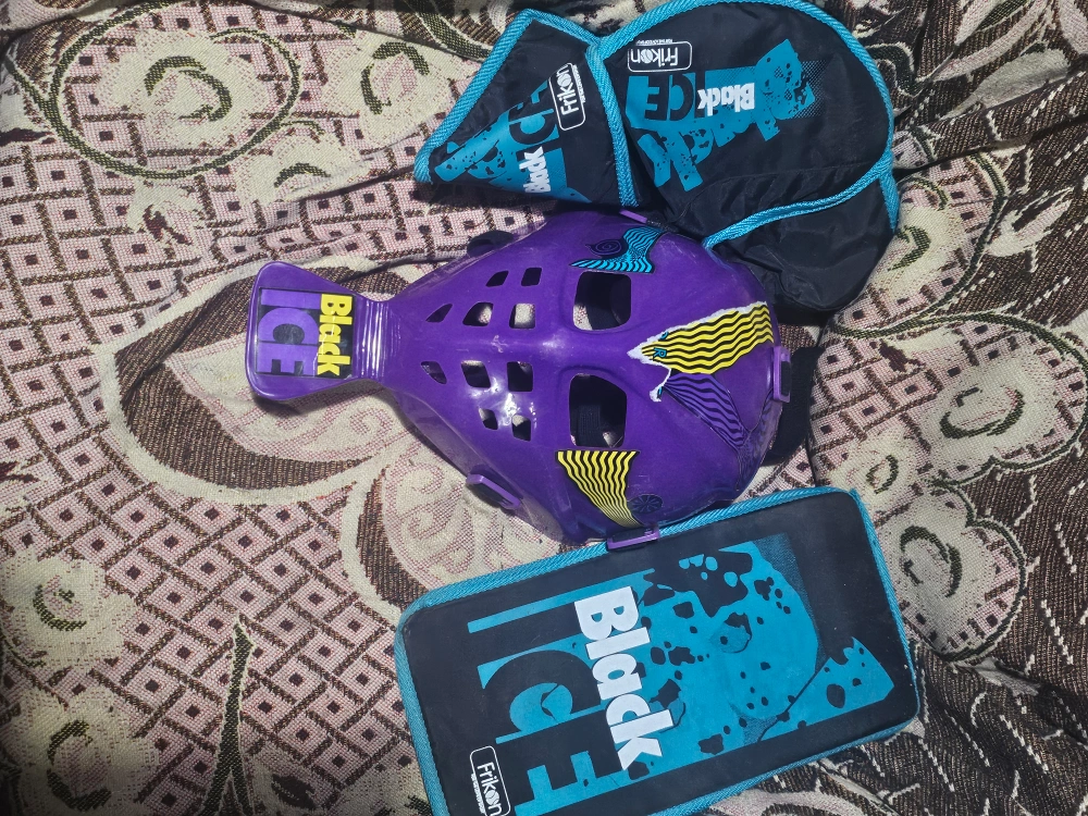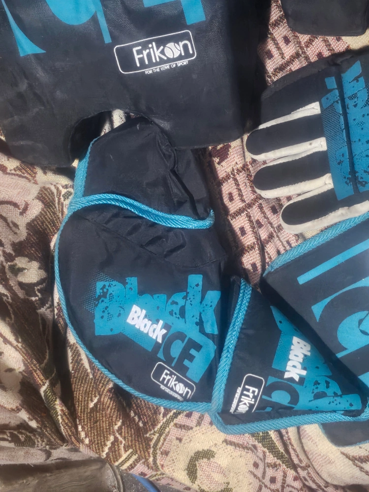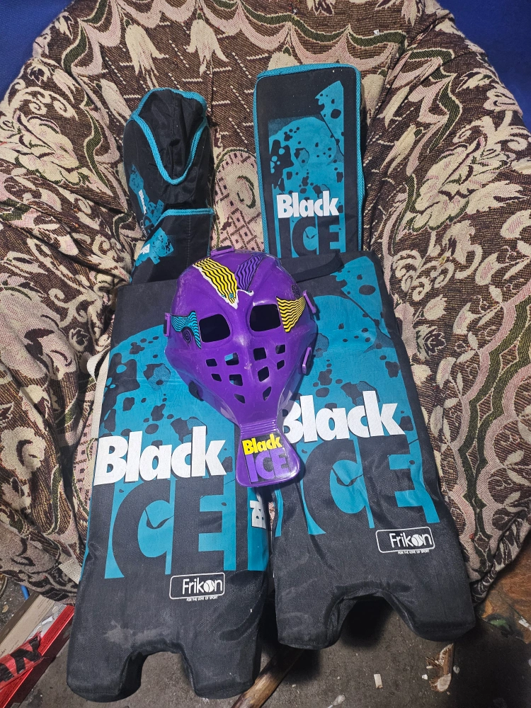 Youth road hockey goalie set. Includes leg pads, goalie mask, plus blocker and catcher gloves.. Excellent condition. Black and teal colour scheme. (Stick NOT included ) pickup only sorry no holds