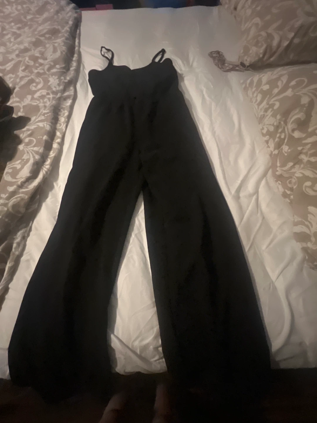 Selling a simple black jumpsuit. It's in great condition and ready for a new home! Perfect for a night out or a casual day.