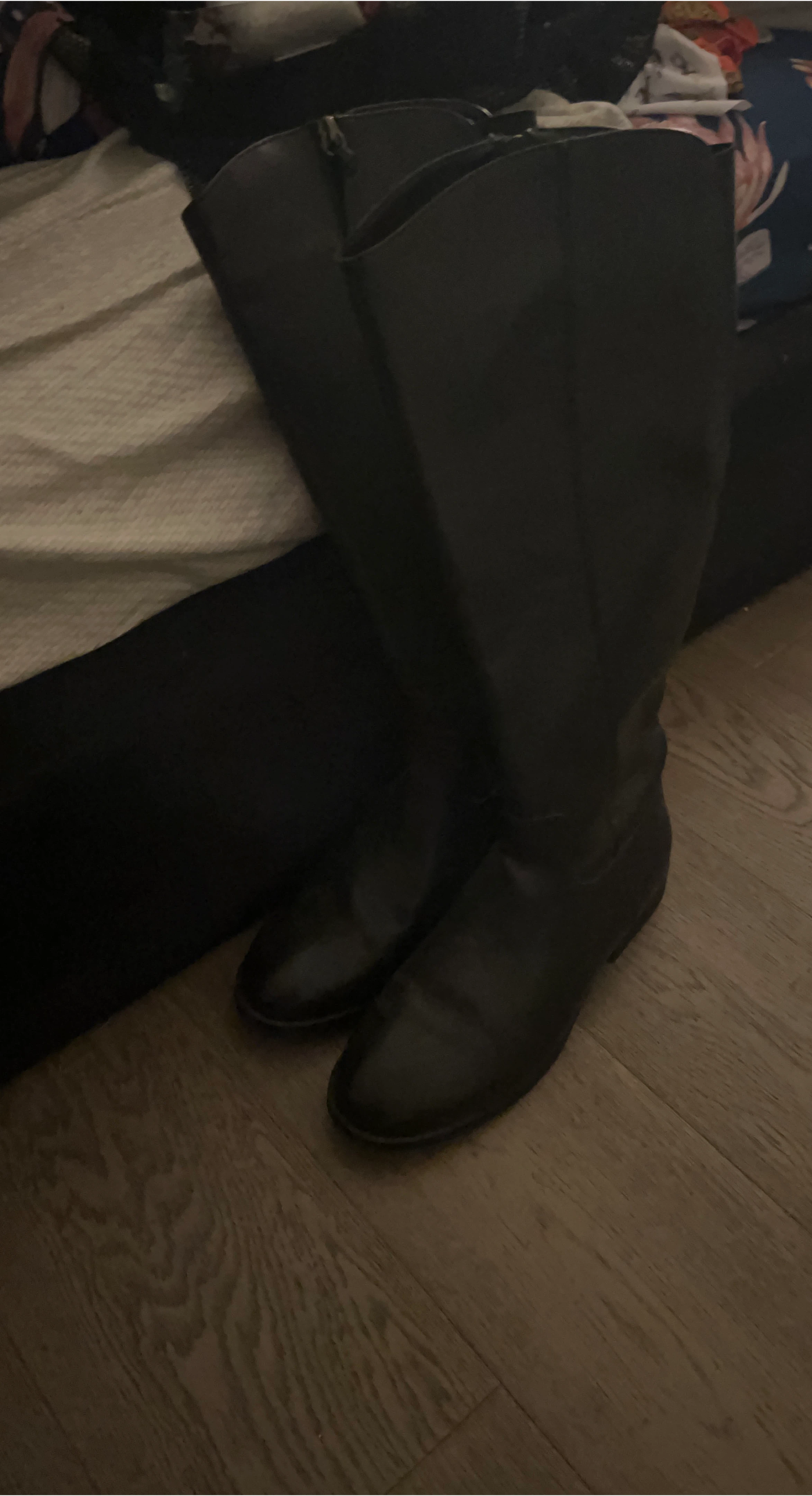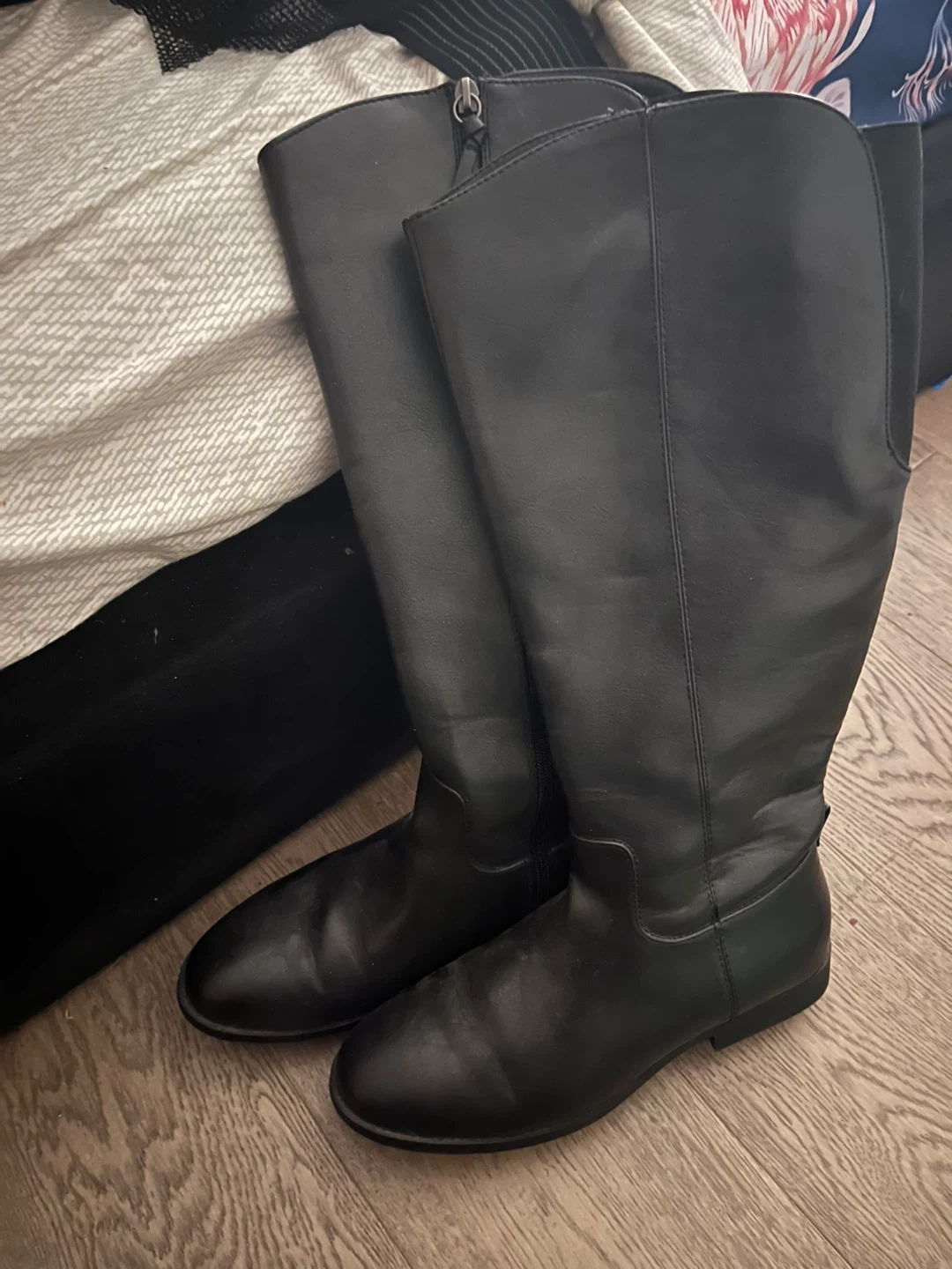 Selling a pair of knee-high boots in black. They are in good condition and ready for a new home! Perfect for adding a touch of style to any outfit. willing to accept the best offer.