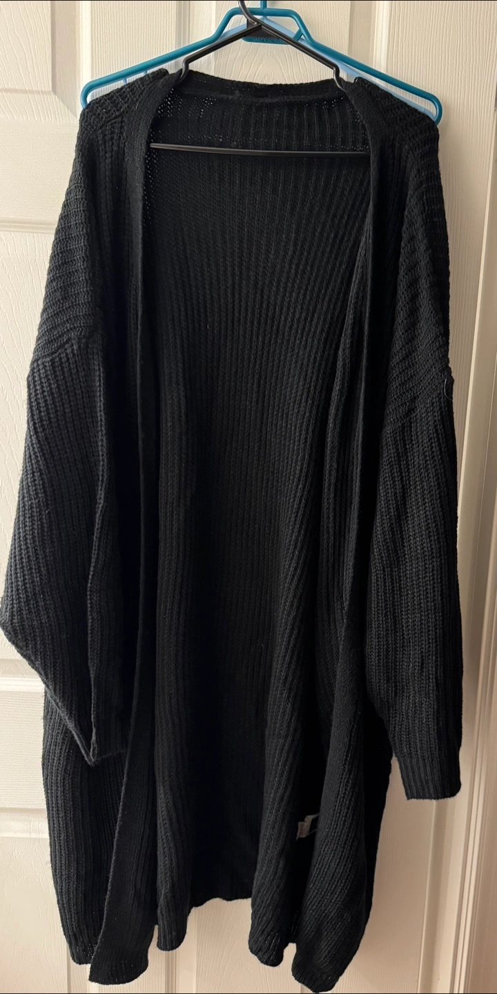 Selling a cozy black knit cardigan! It's in great condition and perfect for layering on those chilly days. It's a comfortable and stylish addition to any wardrobe Pick up only, no meet up