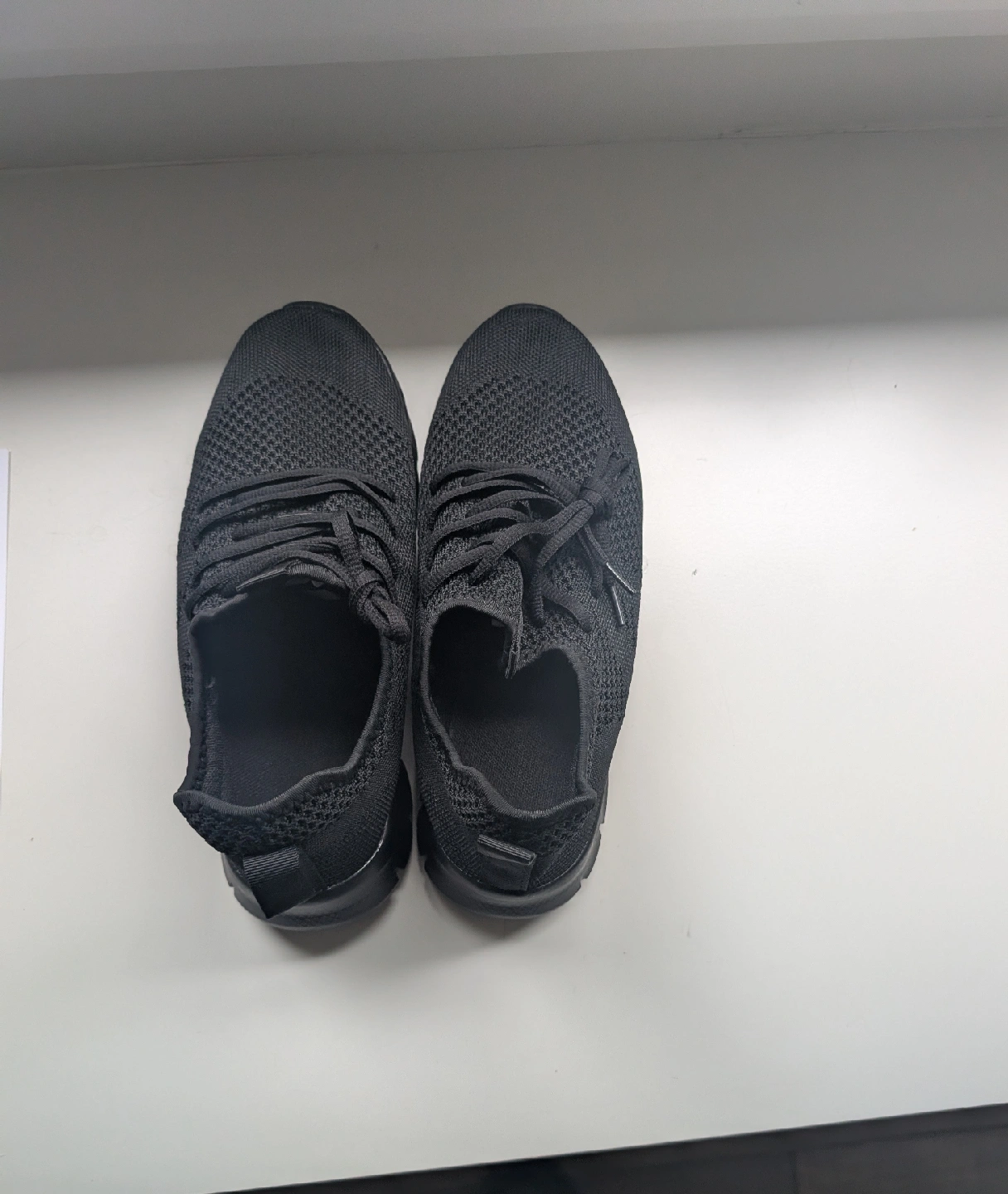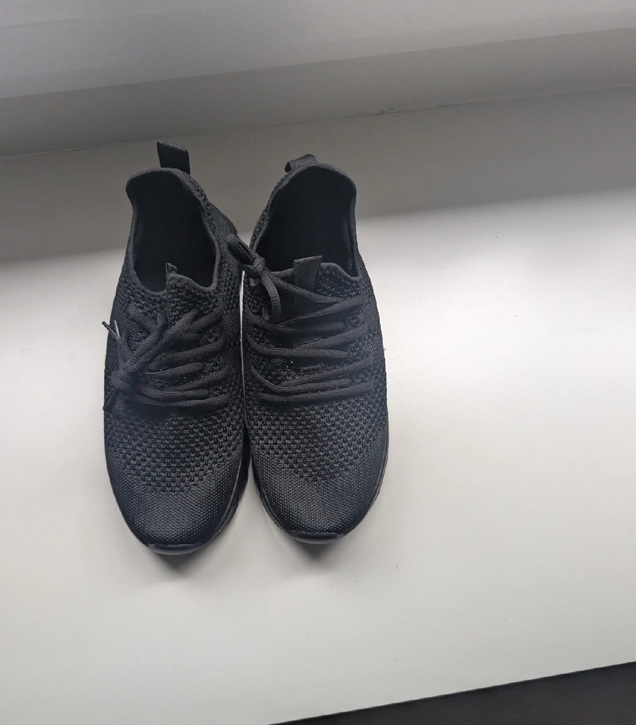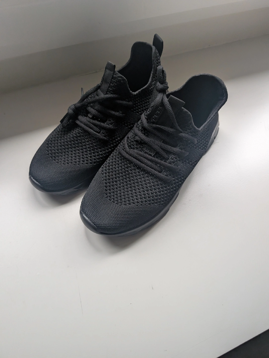 Selling a pair of black knit sneakers. They're in great condition and ready for a new home! These sneakers are perfect for everyday wear and are super comfortable.