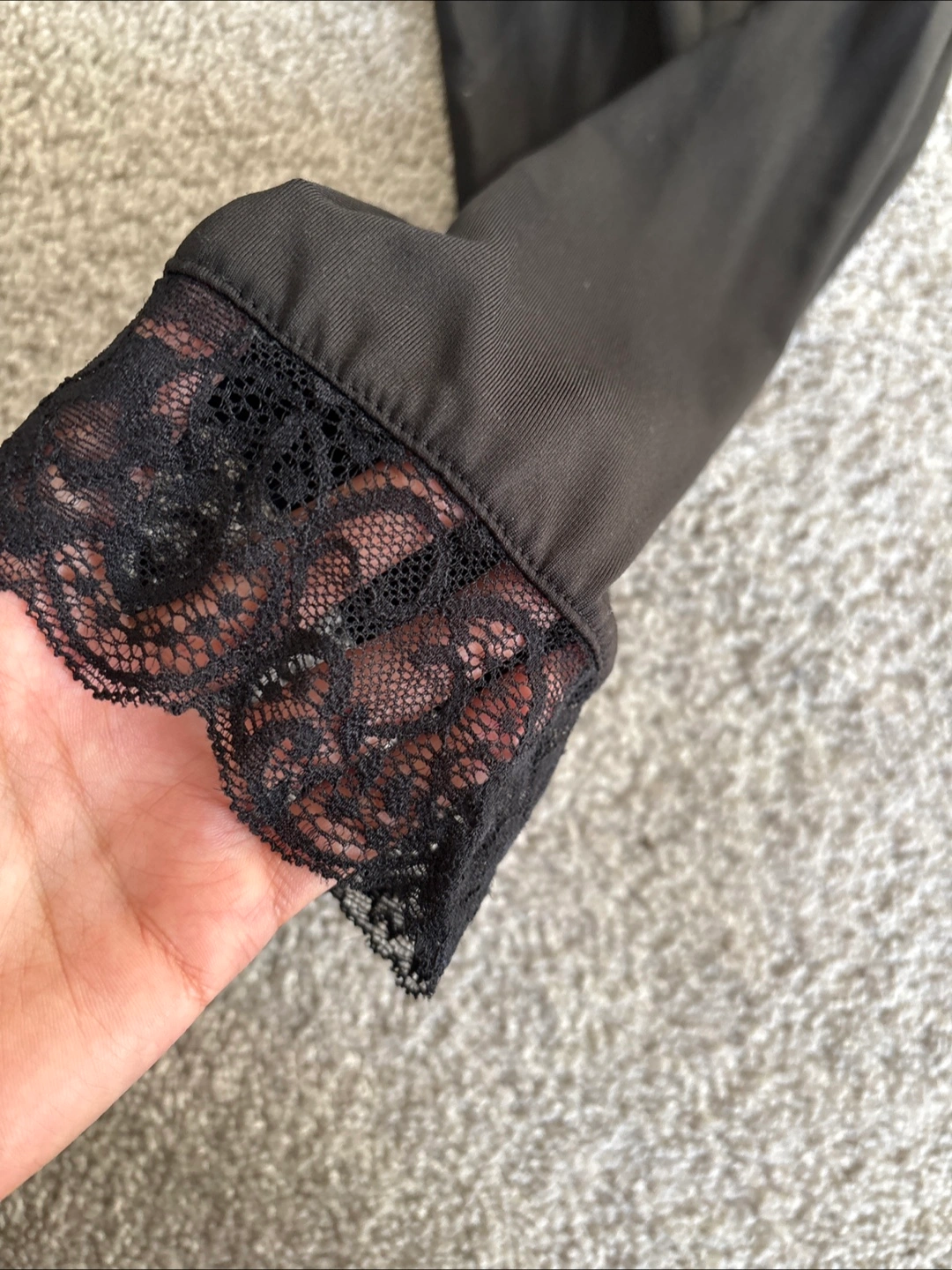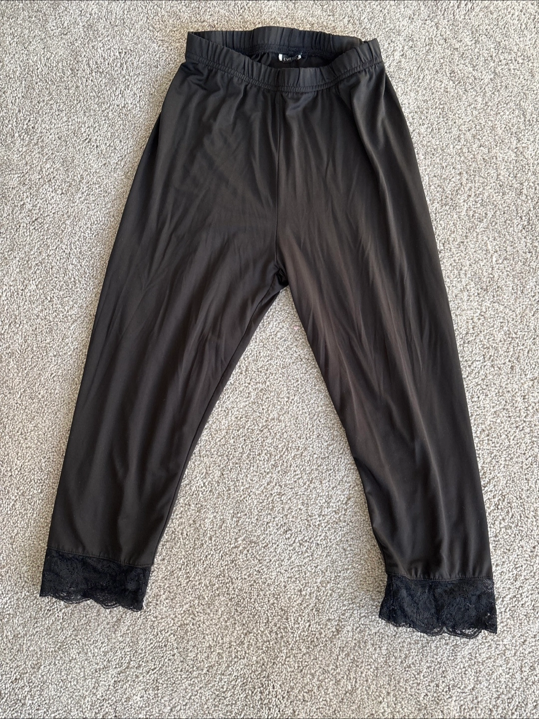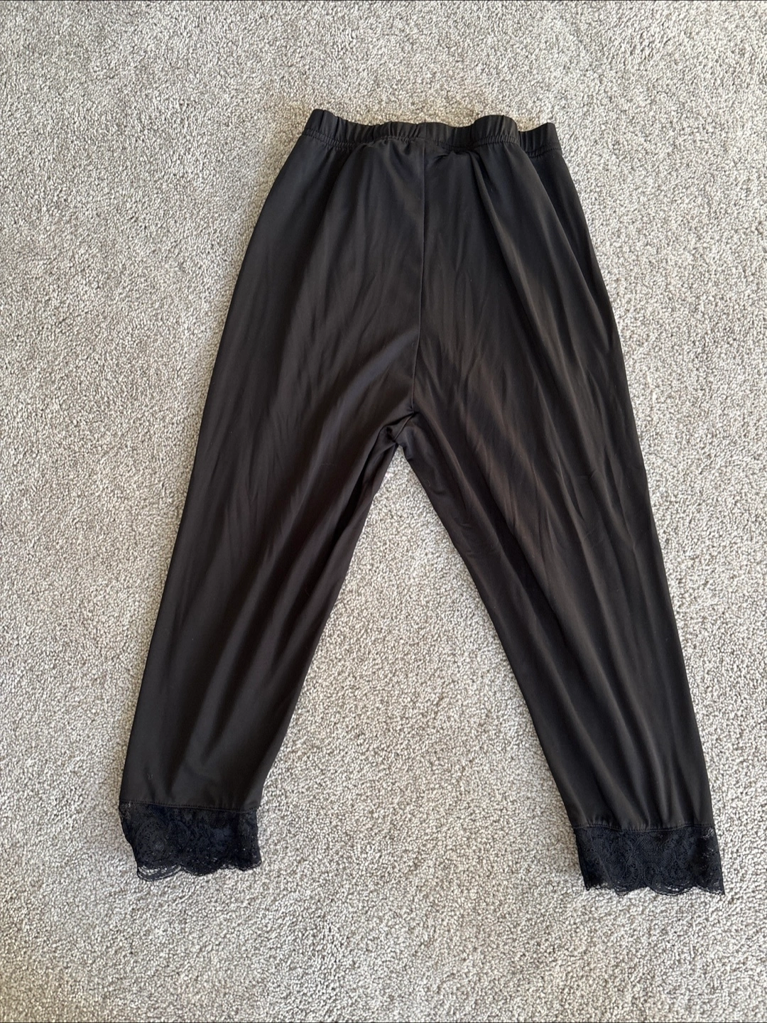 Used, Comfy black lounge pants with a cute lace trim at the ankles! Perfect for lounging around the house or wearing as pajamas. They are in great condition!