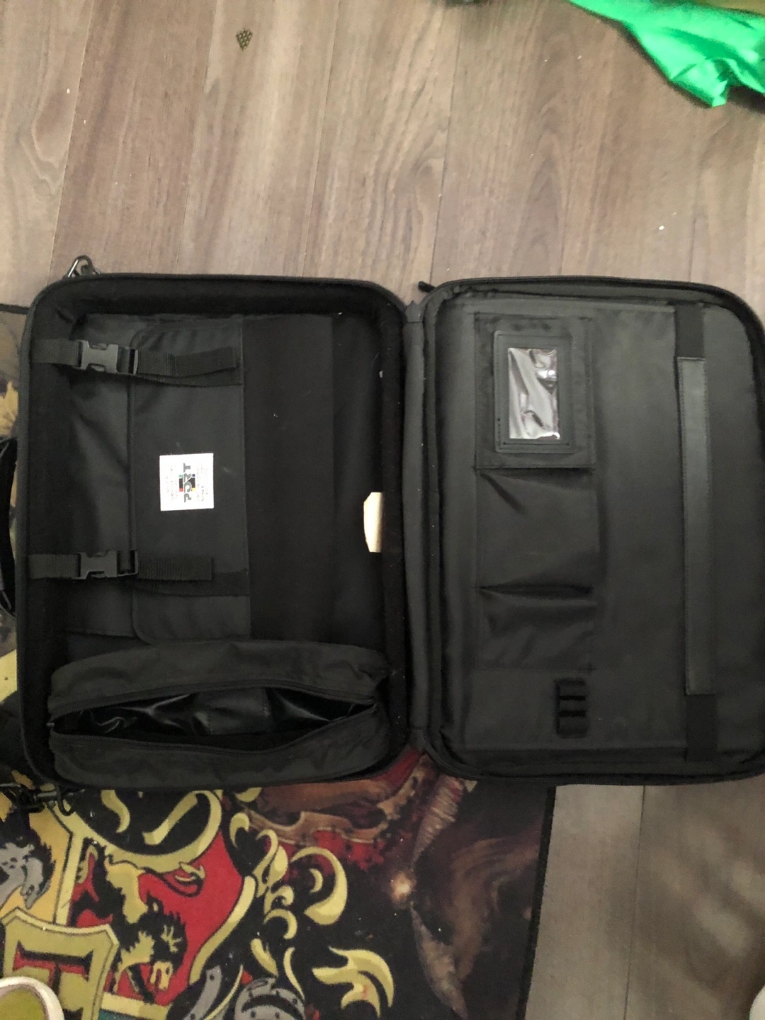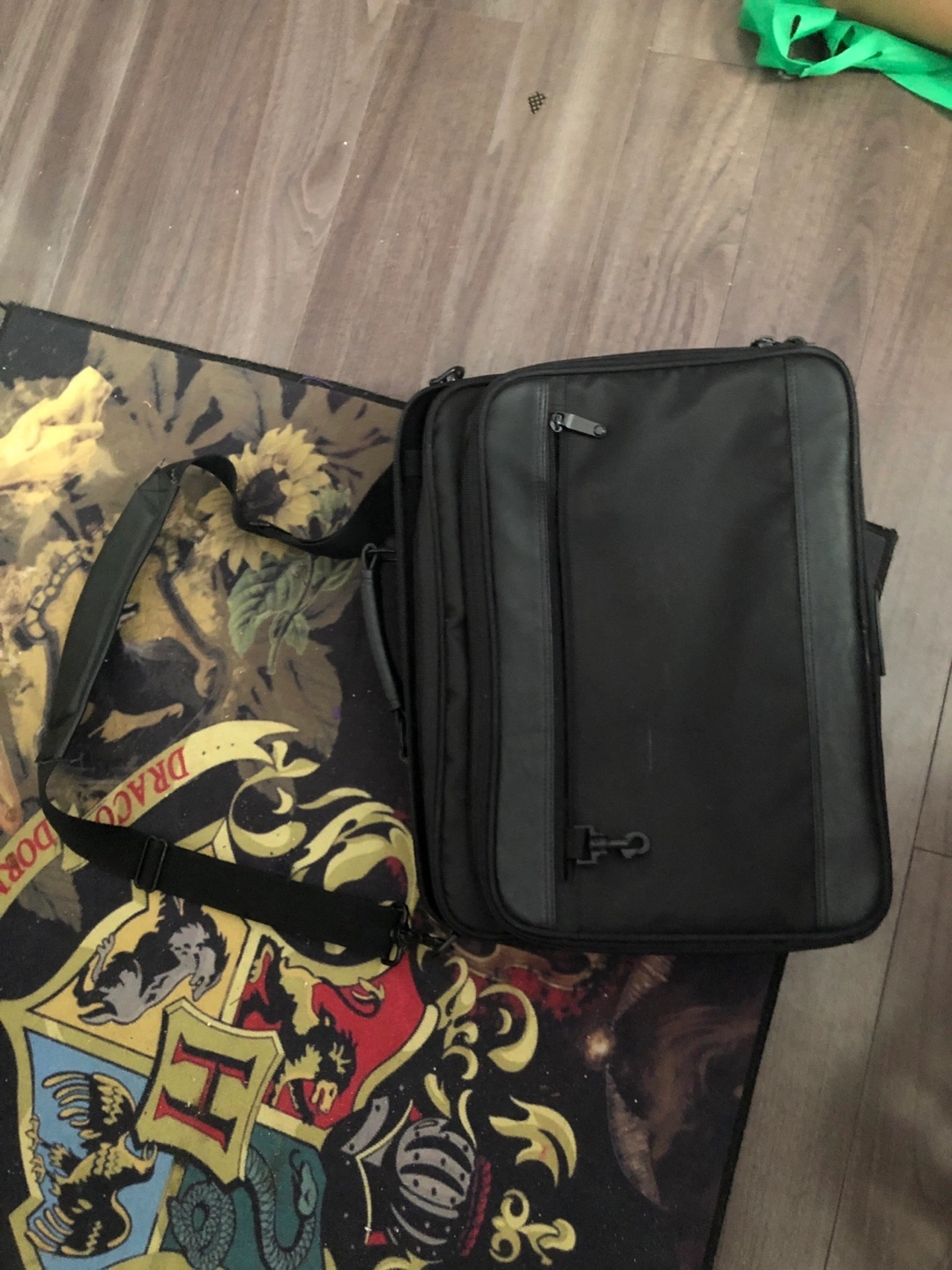 Selling a black laptop bag. It's in good condition and ready to carry your laptop and accessories safely. It features multiple compartments to keep everything organized. Perfect for students or professionals on the go