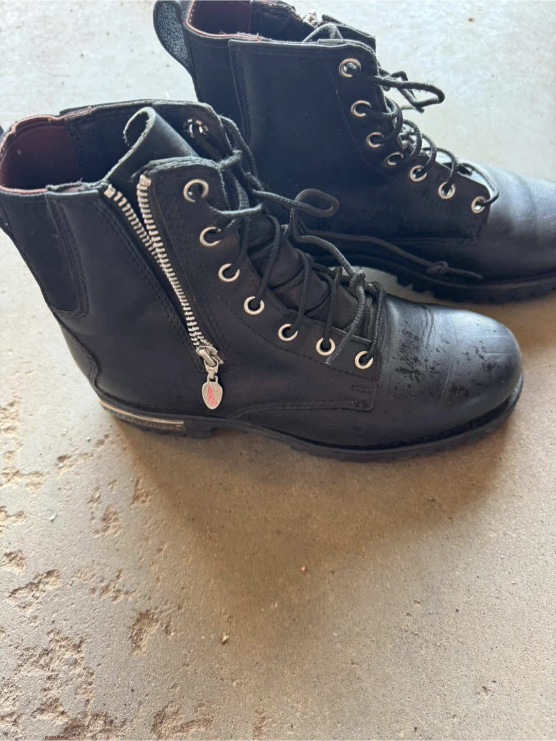 Selling a pair of black leather ankle boots. They show some signs of wear, as you can see in the photos, but they still have lots of life left in them. Great for everyday wear or a night out!