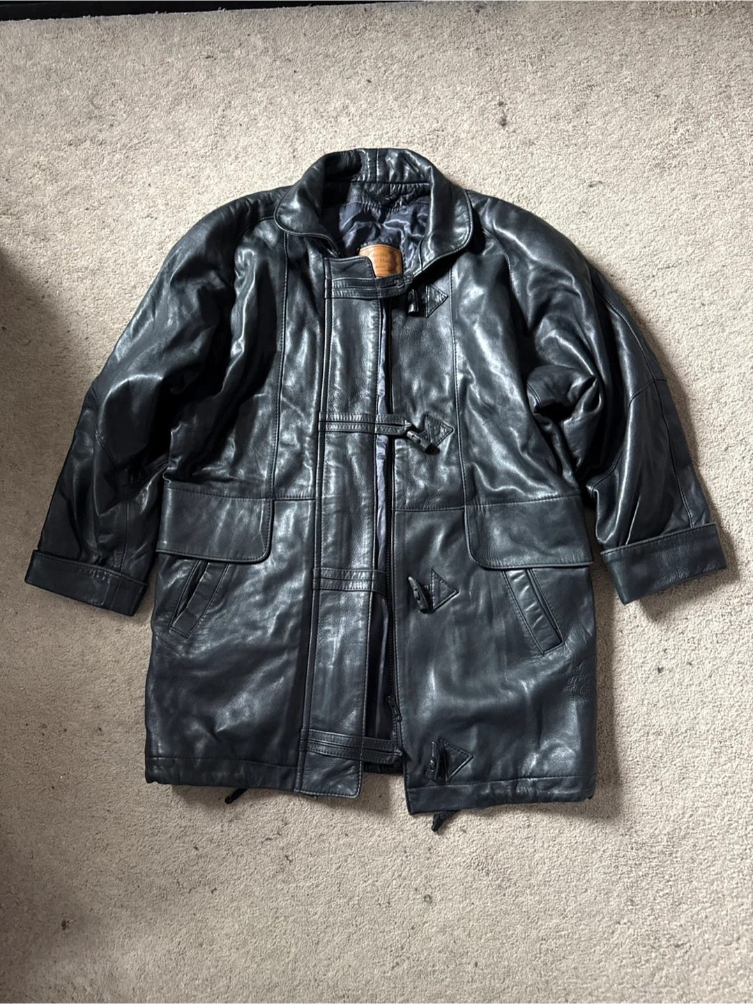 Here's a classic black leather jacket! It's in good condition and ready for a new home. Perfect for adding a bit of edge to your wardrobe