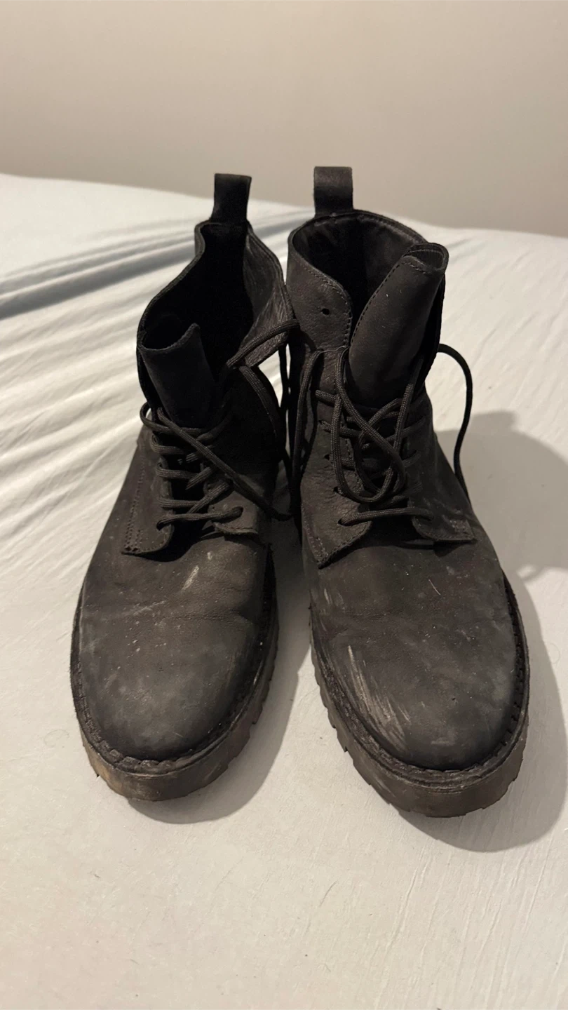 Selling a pair of black leather lace-up boots. They show some signs of wear, as you can see in the photos, but they've still got lots of life left in them! Perfect for adding a bit of edge to your everyday look.