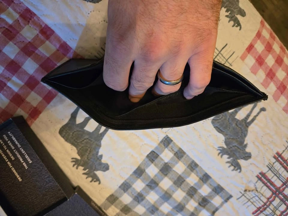 Brand new still in all packaging, never used. Trifold. 2 cash slots and zipper for change. asking $15