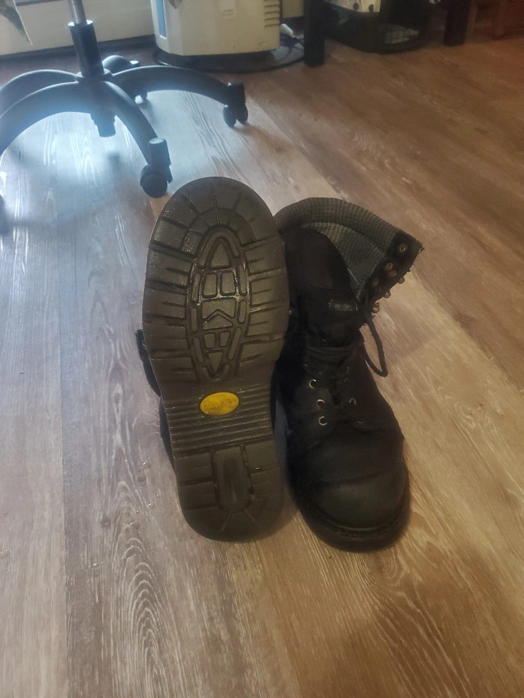 Selling a pair of black leather work boots. They show some signs of wear, but are still in good condition for work. Please see photos for details. they are size 13