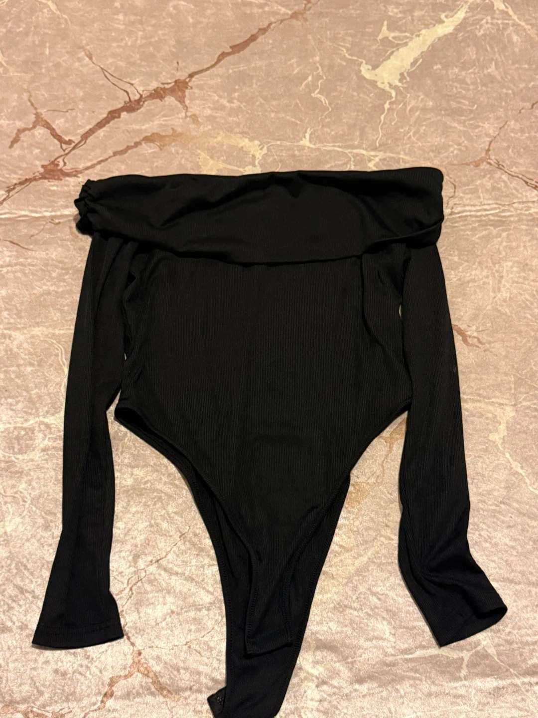 A stylish black long sleeve bodysuit, perfect for layering or wearing on its own! It's in great condition and ready for a new home