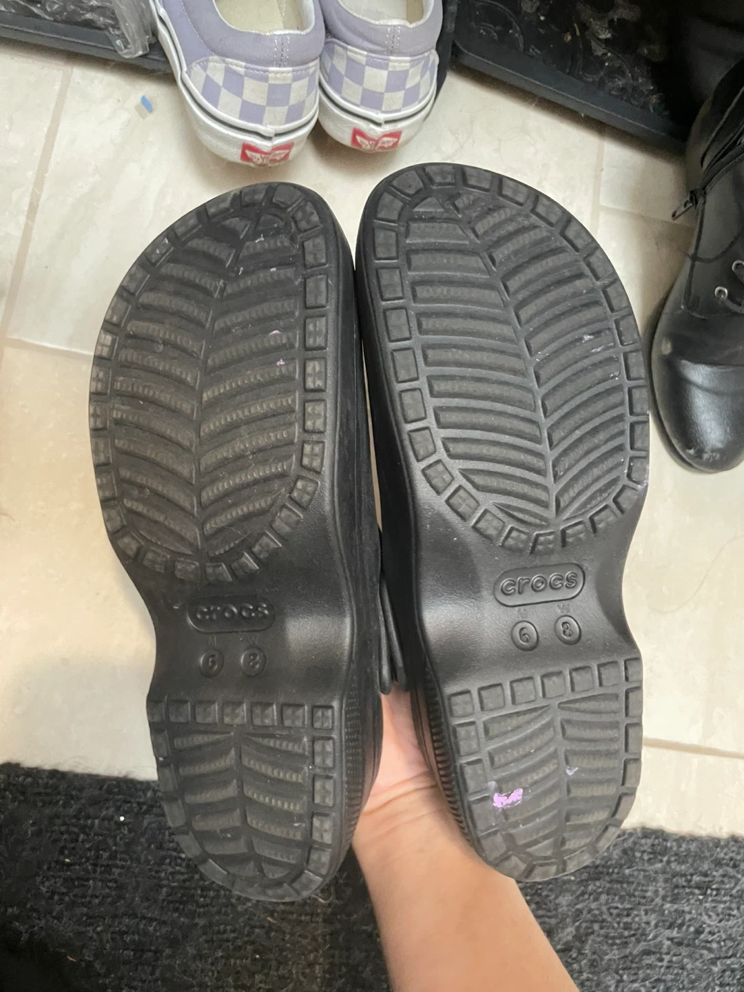 Selling a pair of Mary Jane style black Crocs in size 8. Worn only once or twice, in great condition. Not my style, so hoping they find a new home! Can be cleaned before pickup if you’d like. Comfortable, versatile, and perfect for casual wear. Retail: $64.99 Cash preferred, but e-transfer also accepted