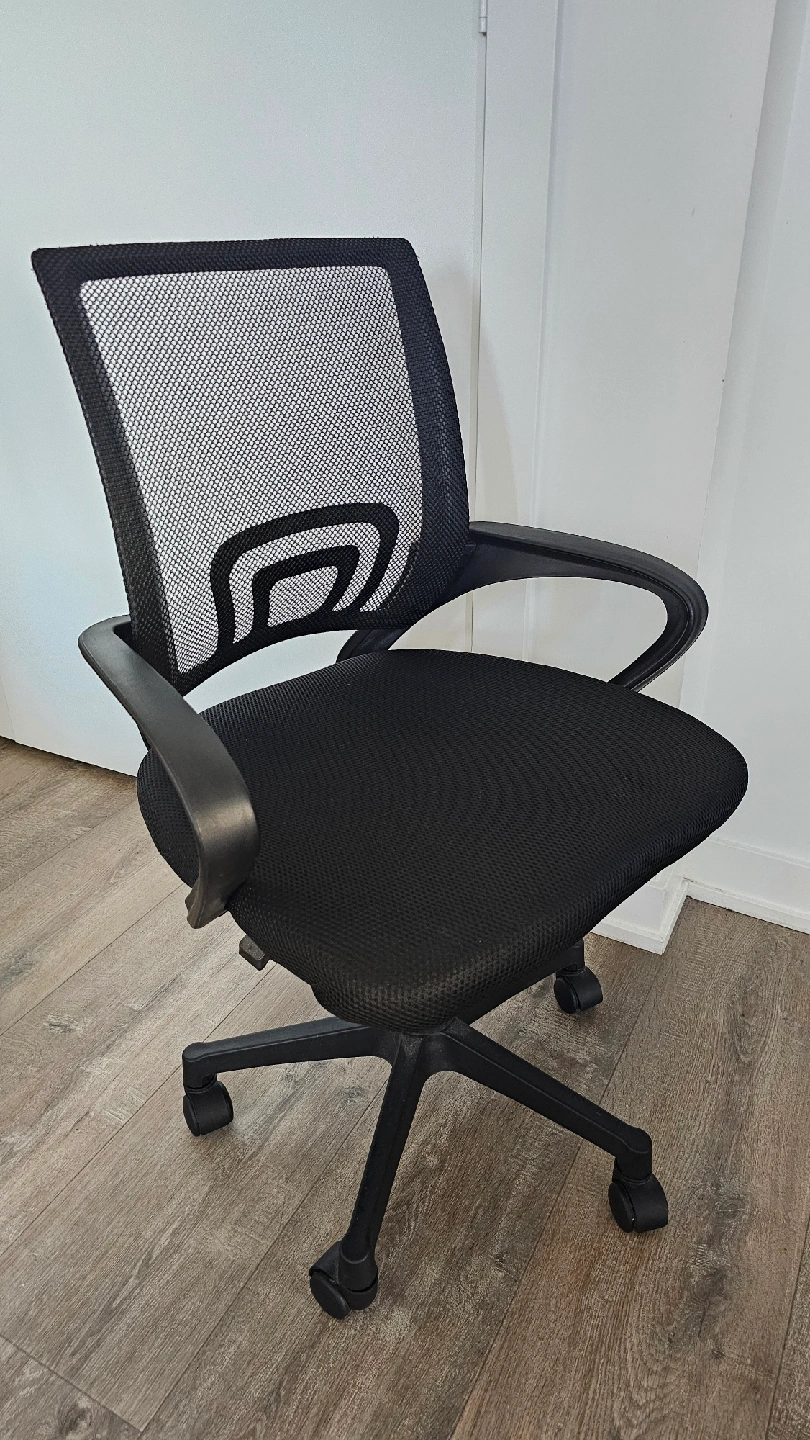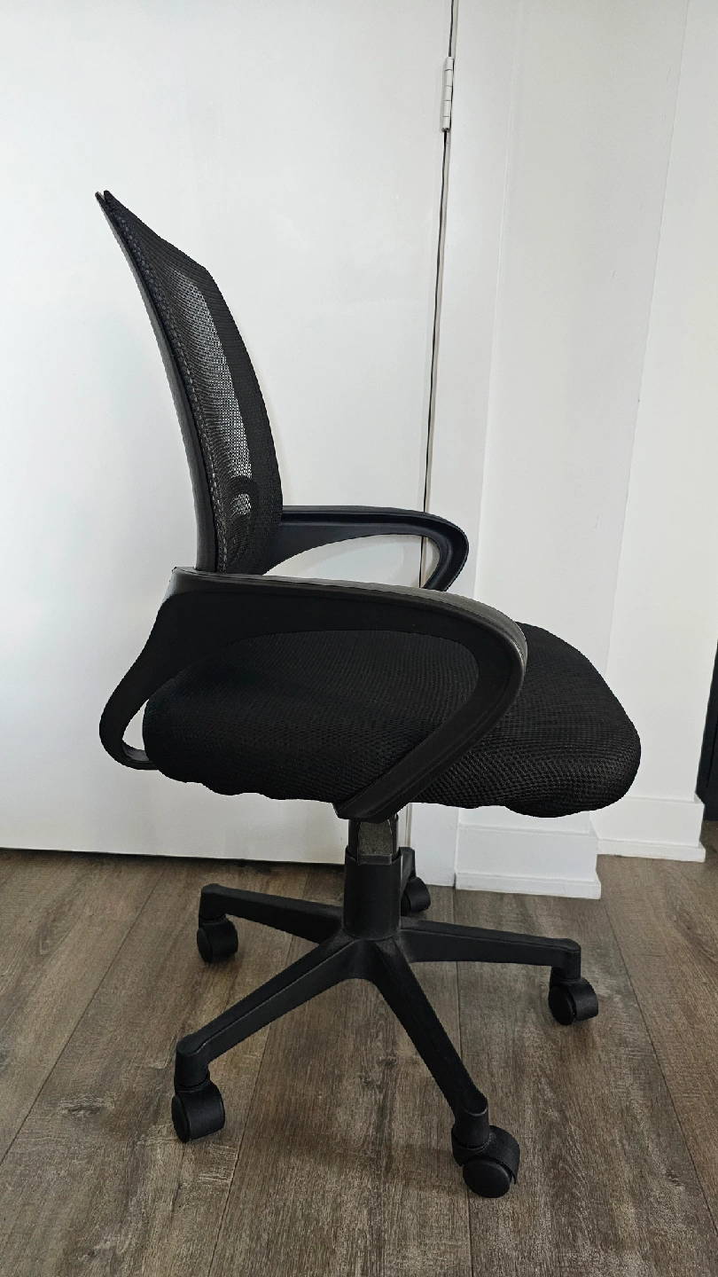 Selling a comfortable black mesh office chair! It's in great condition and perfect for working from home or studying. The mesh back provides good support and breathability, and the seat is nicely cushioned. It's easy to adjust the height too. Please checkout my other listings too. thank you!