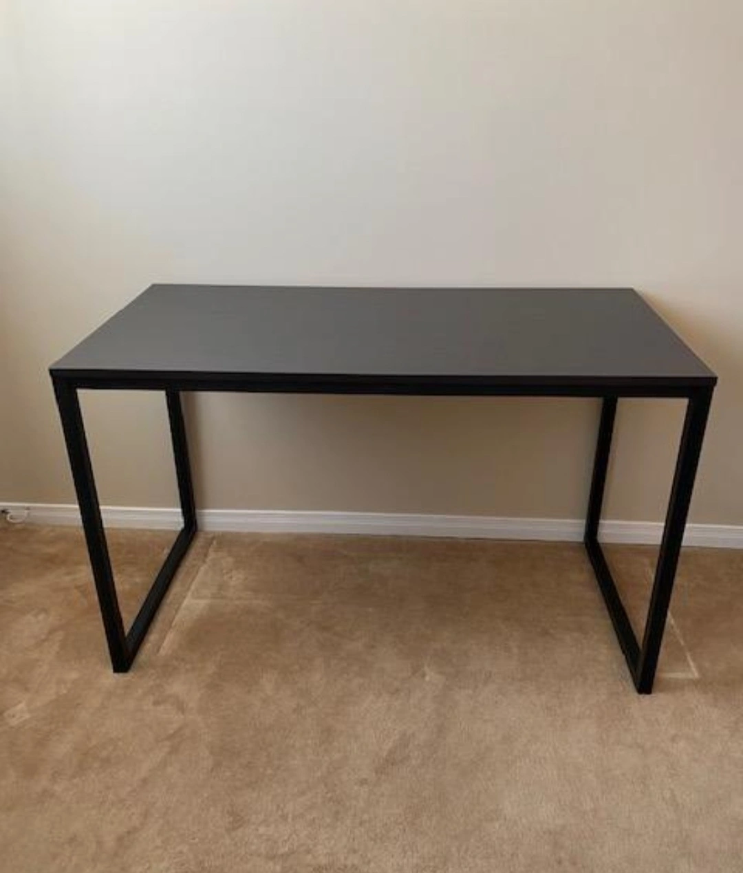 For Sale: Black Frame & Deep Espresso Top ✨ ✅ 47-inch wide surface – plenty of space for laptop, monitor, or books ✅ Sleek black steel frame with a deep espresso wood finish top ✅ Minimalist modern design – fits any décor ✅ Easy assembly – ready in minutes ✅ Strong, durable, and space-saving