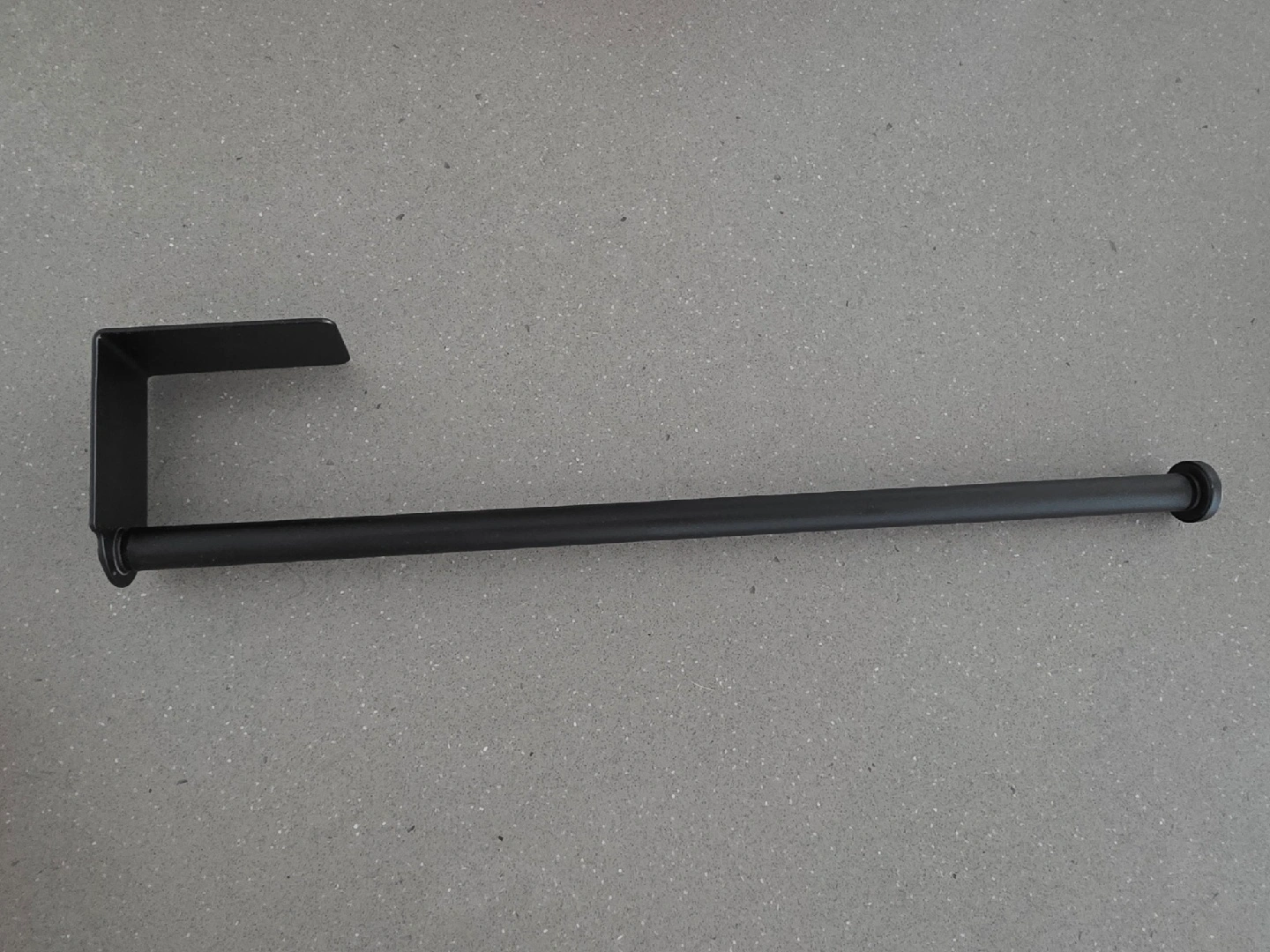 Selling a black metal paper towel holder. It's in great shape and ready to use in your kitchen! It has a modern, minimalist design that will fit in with any decor