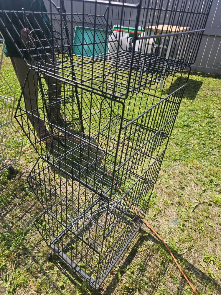 Selling a black metal wire basket stand. It's in great condition and ready to organize your space! Perfect for storage or display