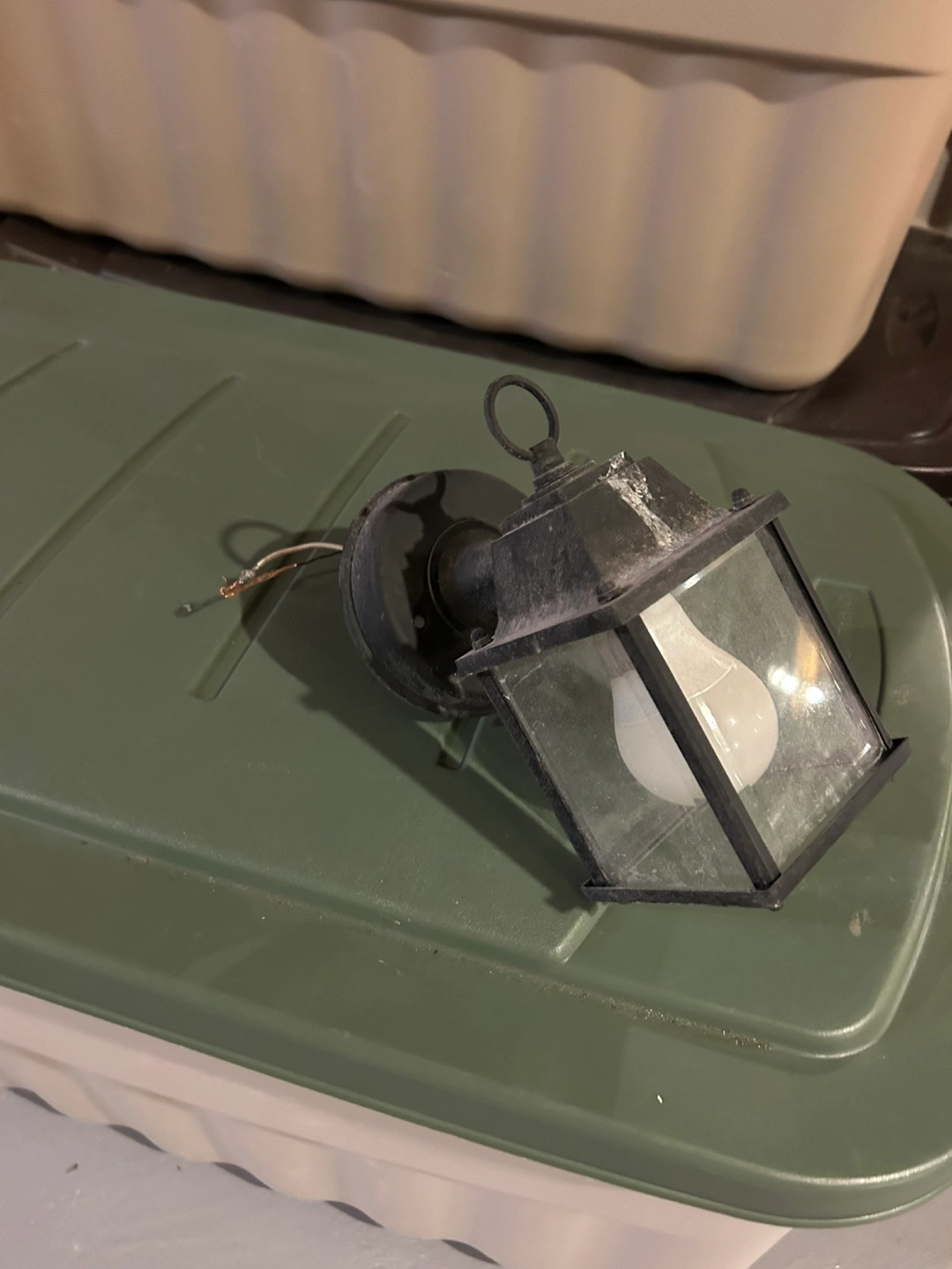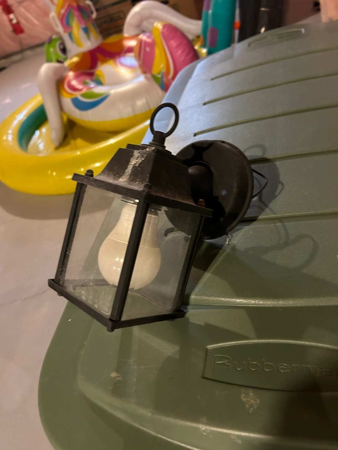 Small black outdoor wall light. Square glass panels. Includes bulb. Shows some wear. Just needs a clean ! I have two fixtures. $20 each or $30 for both