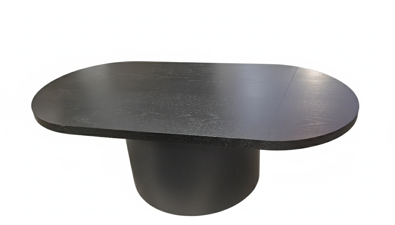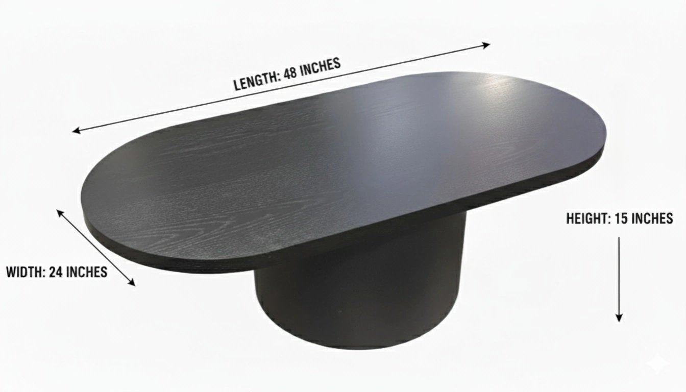 Selling a stylish black oval coffee table! It's in great shape and would look fantastic in any living room. The dimensions are 48 inches in length and 24 inches in width, with a height of 15 inches.