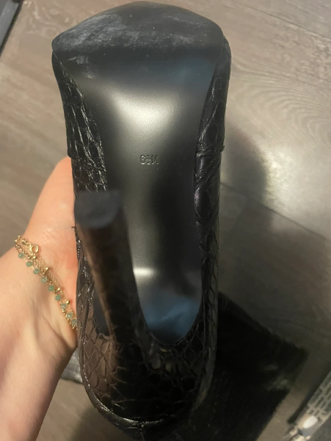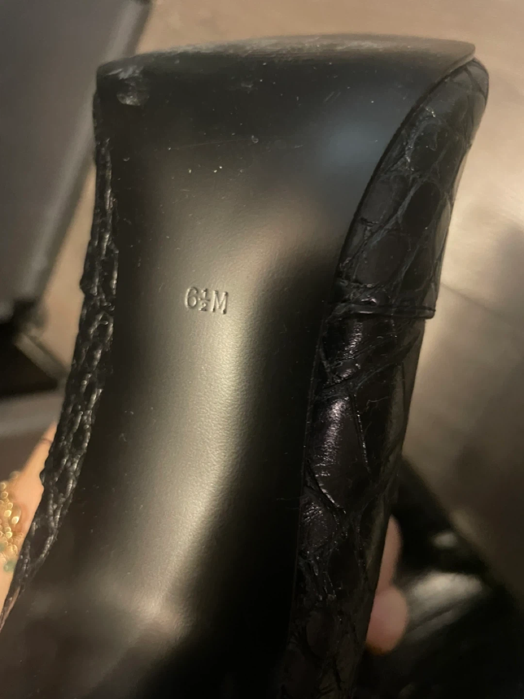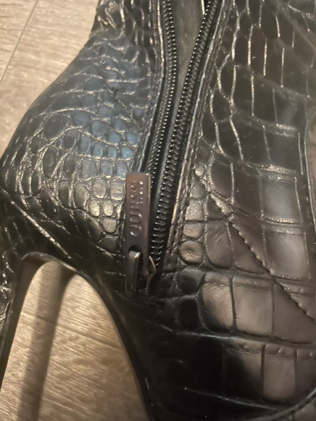 Selling a pair of stylish black over-the-knee boots. They feature a unique crocodile skin pattern and a sleek high heel. The size is 6.5M. Perfect for a night out! Cash only. Pick up only. DM if you want more info.