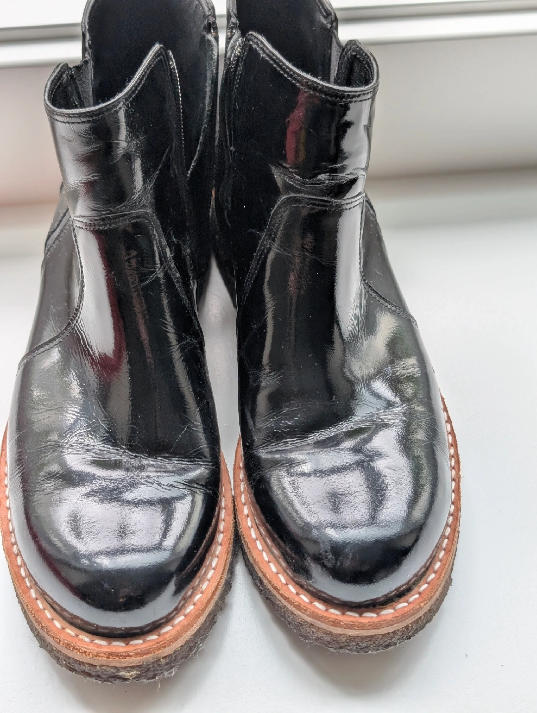 Selling a pair of black Patten leather ankle boots. They have a glossy finish and a unique stitched welt detail. I purchased these while travelling in Argentina. they are very comfortable and lightweight. fits size 7 .5-8Perfect for adding a bit of edge to your wardrobe!