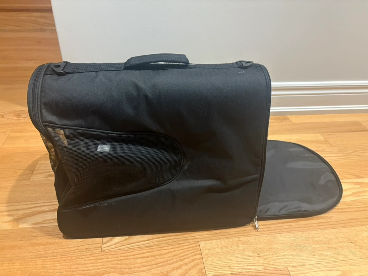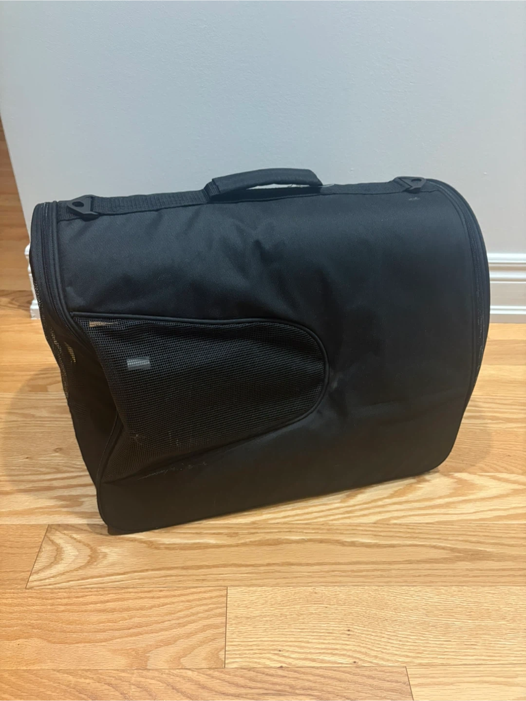 Selling a pet carrier in excellent condition! It's black and features mesh windows for ventilation and visibility. Perfect for vet visits or travel with your furry friend