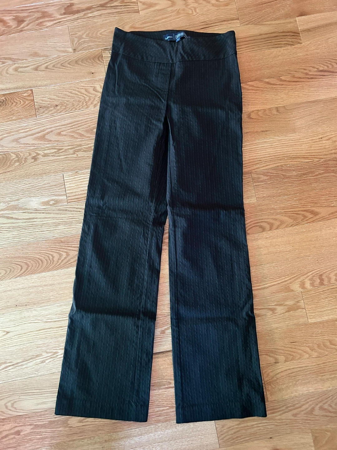 These are a pair of Reitmans black pinstripe pants! They're in great condition and perfect for business casual or a night out. They are a bit stretchy.