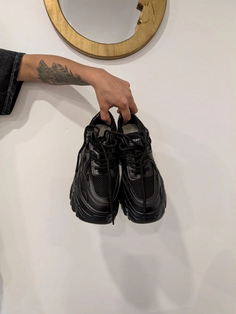 Selling a pair of black platform sneakers in size 37. They have a chunky sole and lace-up design, perfect for adding some edge to your look. The sneakers are in good condition and ready for a new home!