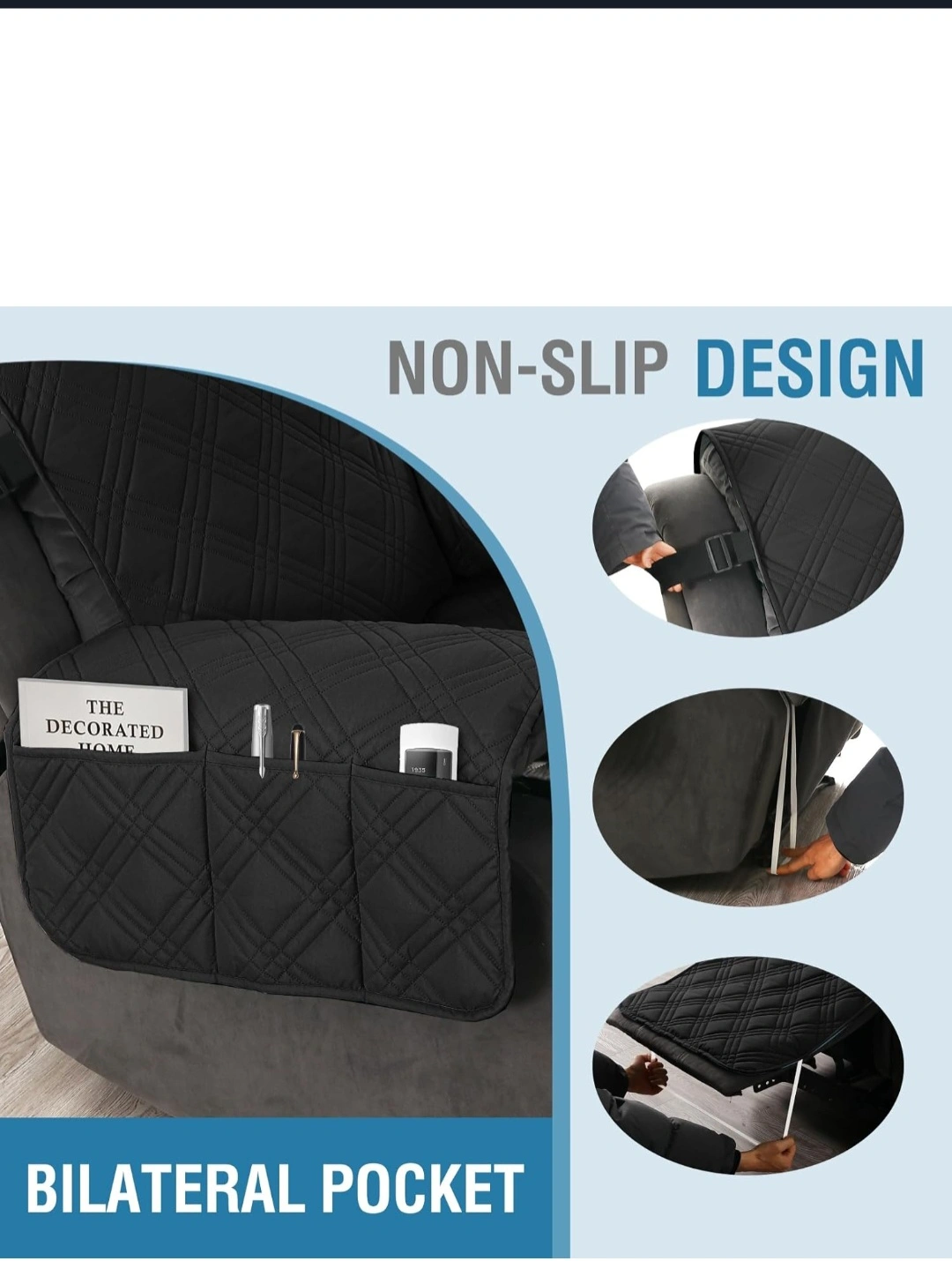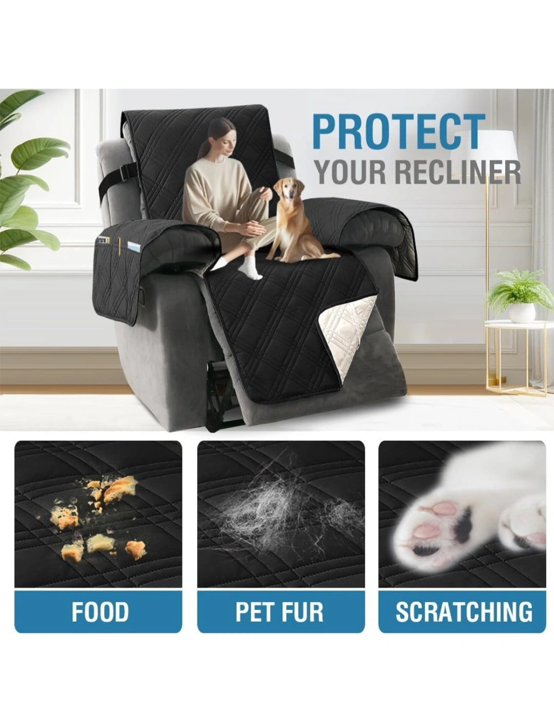 Keep your recliner protected with this handy cover! It's designed to protect against food, pet fur, and scratching. It also features a non-slip design and bilateral pockets for added convenience. The cover is surface waterproof, has a widening edge wrapping, and is machine washable
