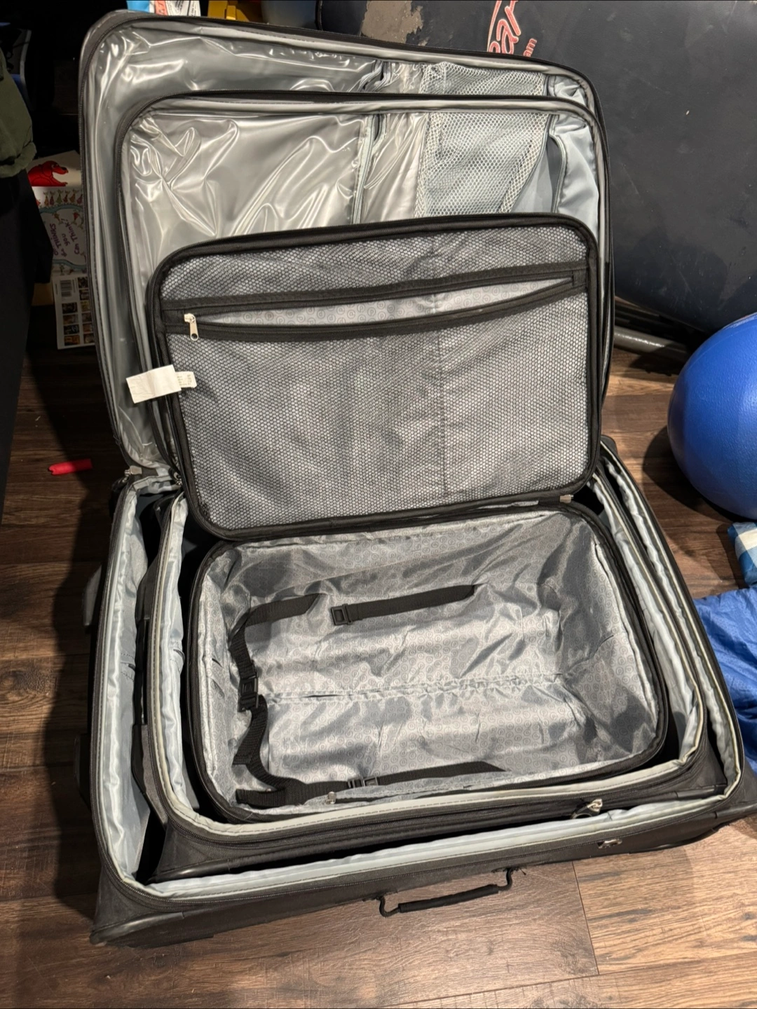 Set of 3 - large, medium and carry on size. The zipper on the front of the large suitcase is missing.
