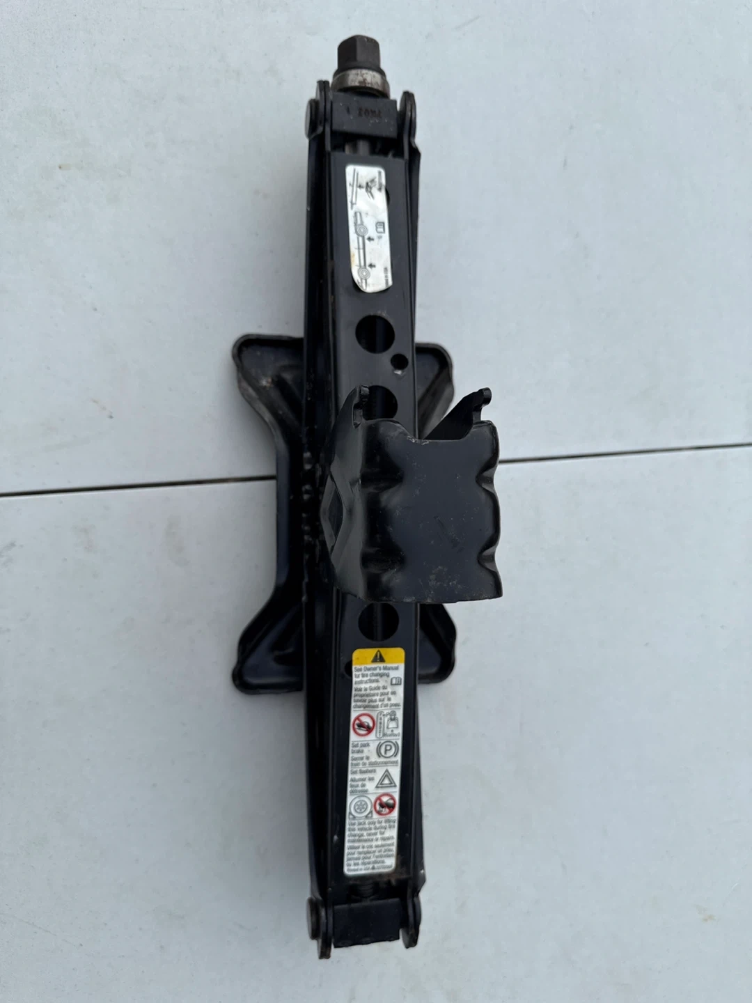 Selling a black scissor jack. It appears to be in used condition, showing some signs of wear. Perfect for automotive needs!