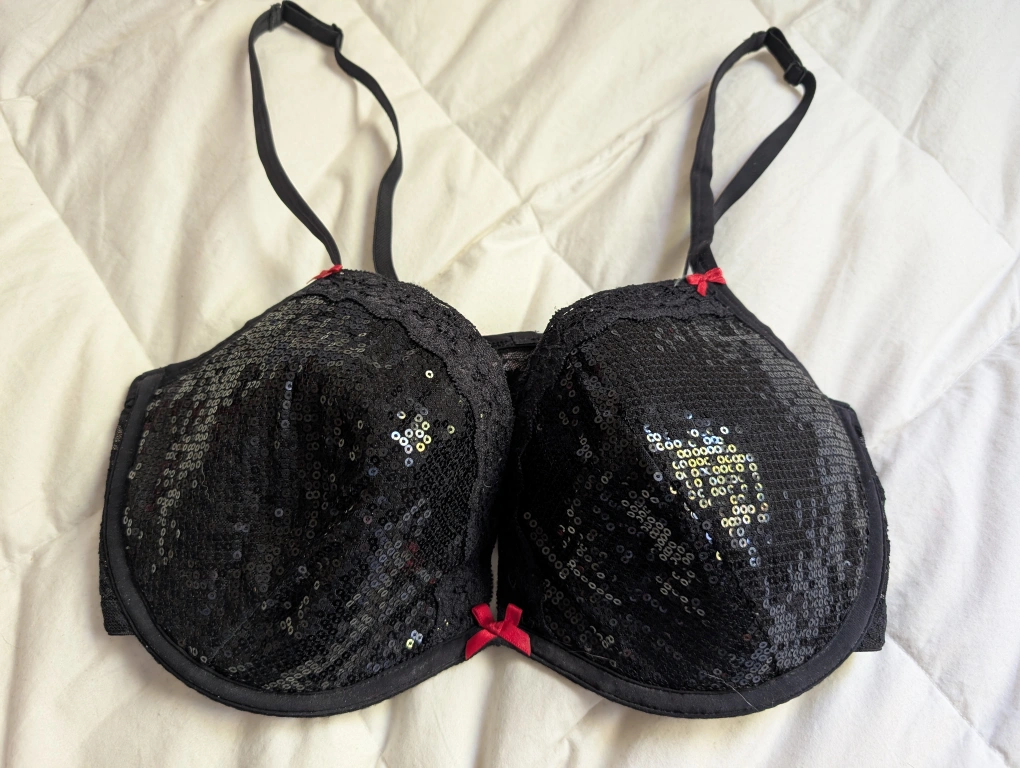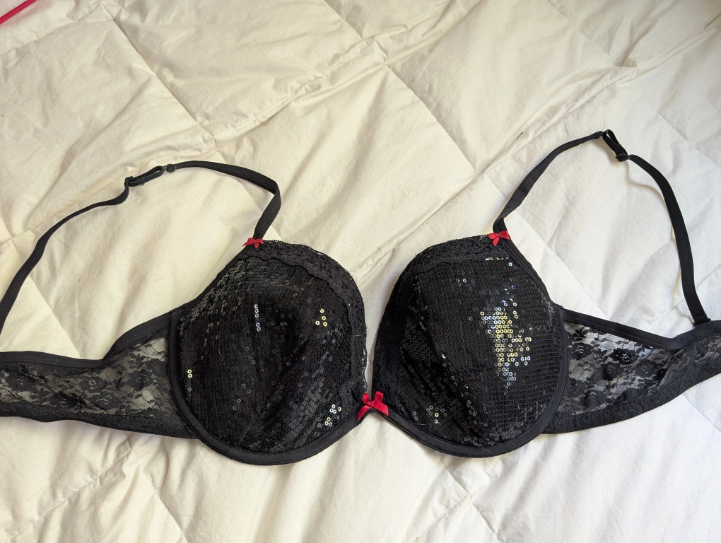 Stunning black sequence underwire Bra. Lacey side straps. LaSenza size 38D. Excellent condition. π PICK UP TOWNLINE HWY 2 AREA π CASH is preferred please π Thanks for looking π©΅