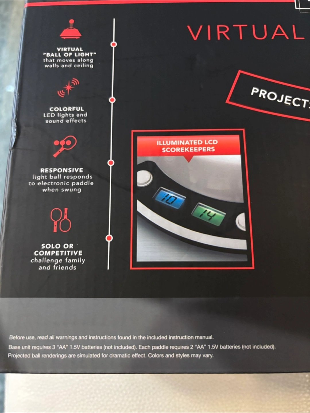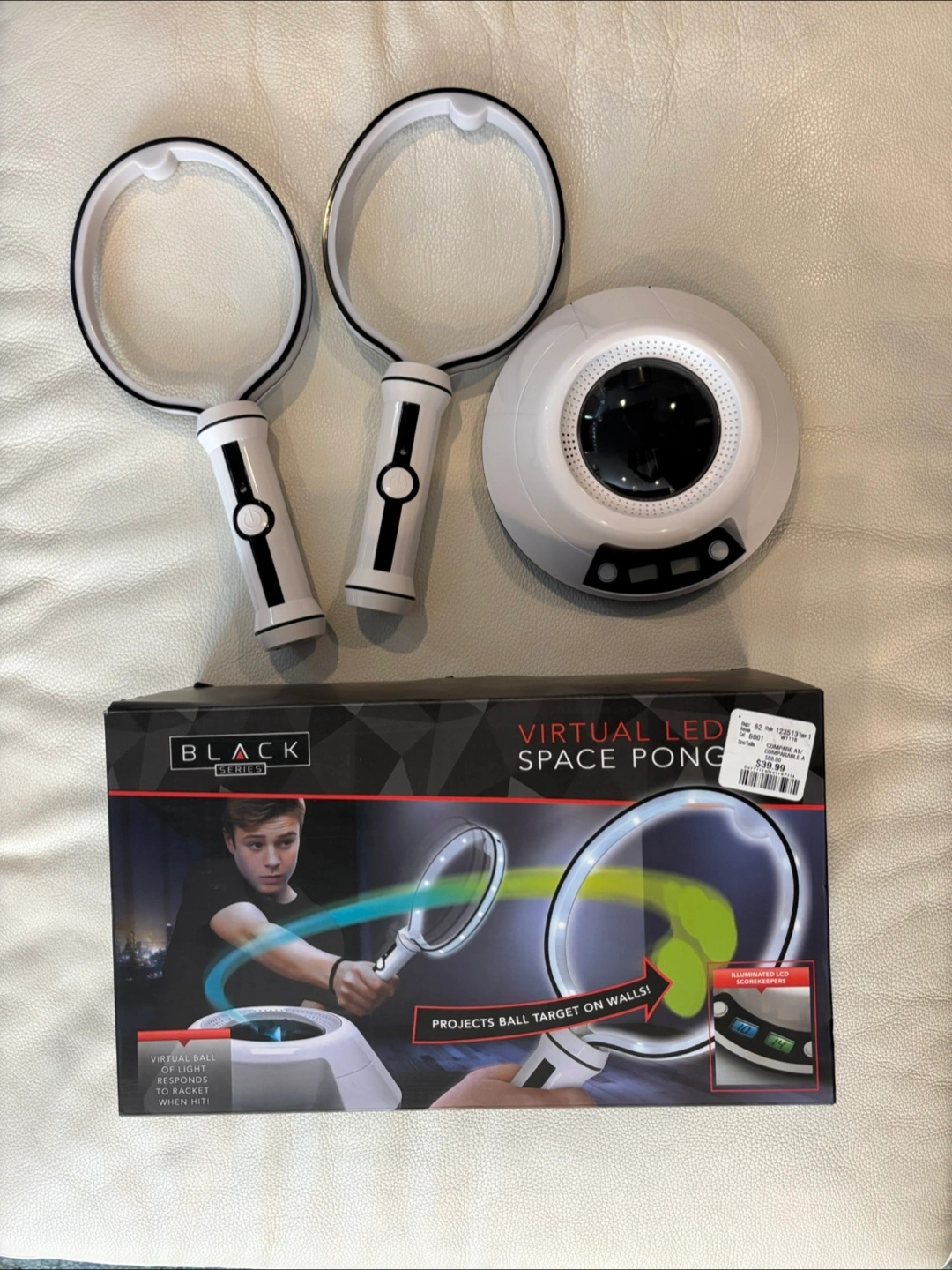Selling a brand new Black Series Virtual LED Space Pong game, still in its original packaging! This fun game projects a virtual ball that you can hit with the included paddles. It features: - Illuminated LCD scorekeepers - Colorful LED lights and sound effects - Responsive light ball that reacts when swung Perfect for solo play or competitive fun with family and friends!