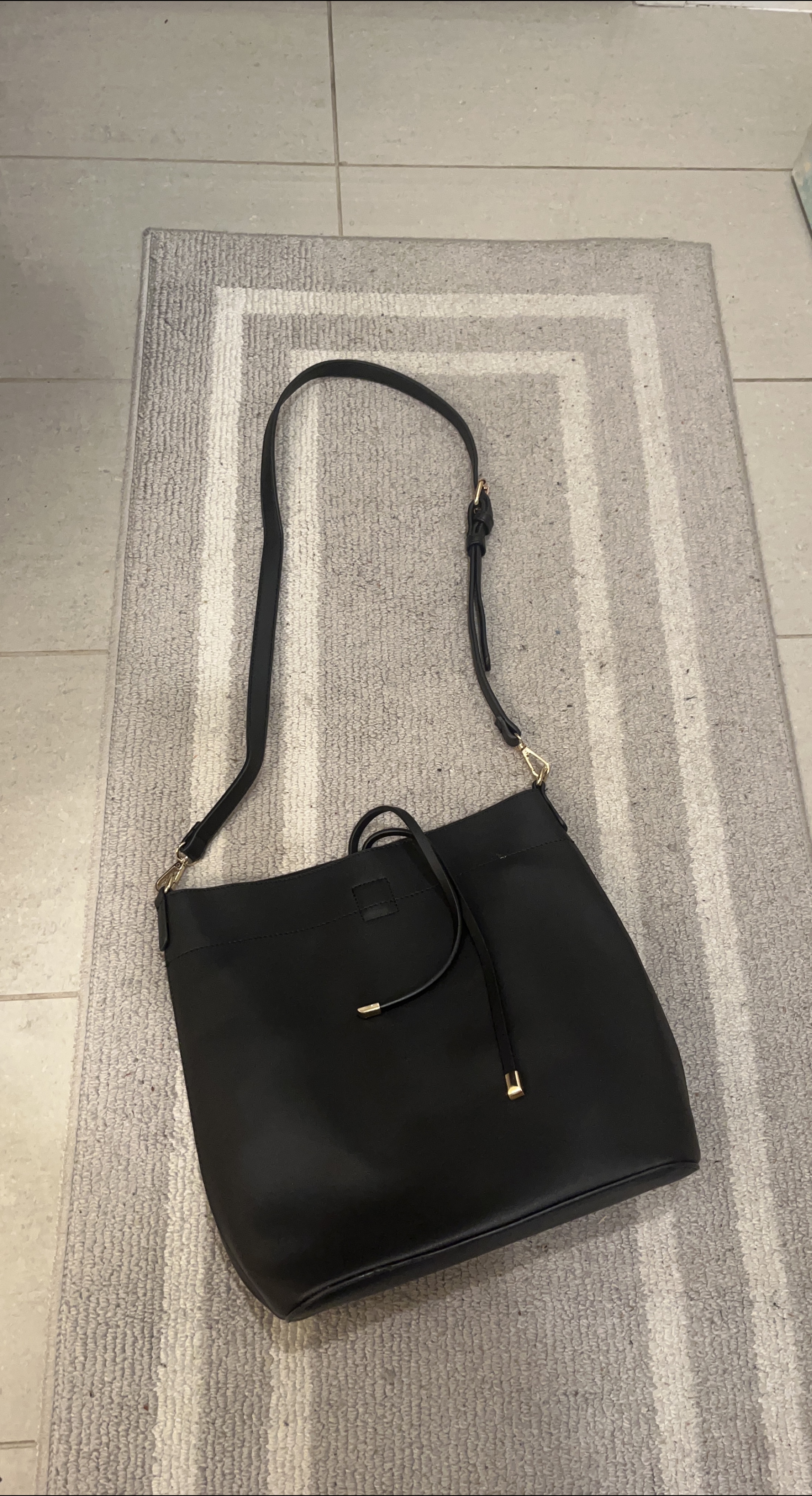 This is a stylish black shoulder bag with black embellishments. It's in great condition and ready for a new home! Perfect for everyday use or a night out
