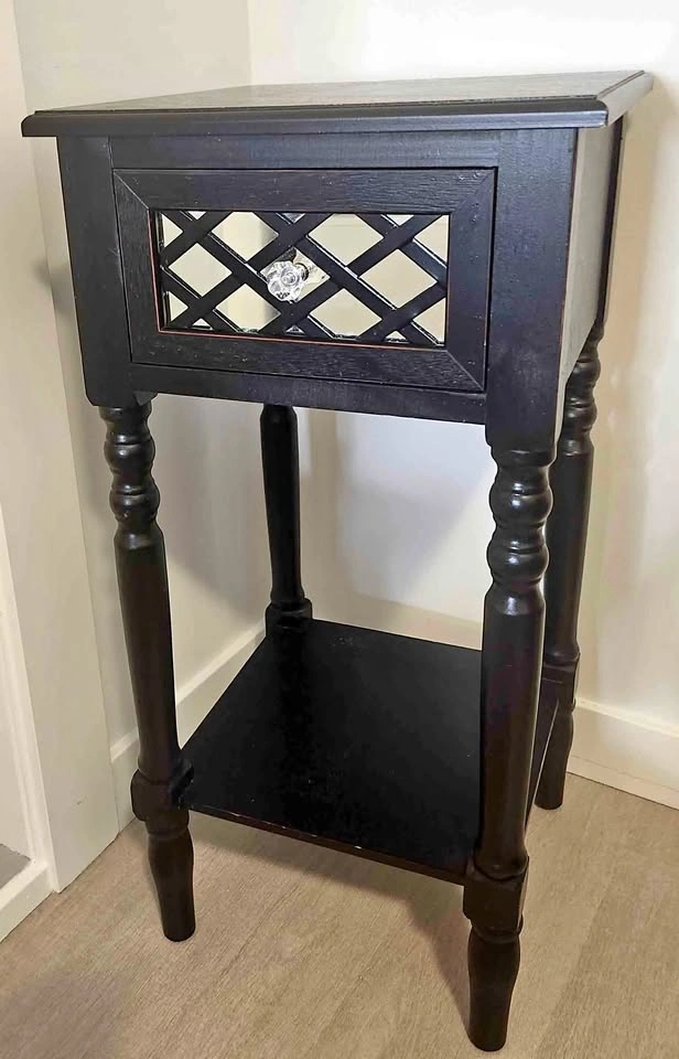 PERFECT SIZE: Perfectly sized to fit any room, this sleek table measures (L) 14 in. x (W) 14 in. x (H) 28 in. Crafted from high-quality manufactured wood, solid wood, and veneer. This timeless accent table is durable for long-lasting enjoyment! MDF,Manufactured wood Pick up South Burnaby Cash