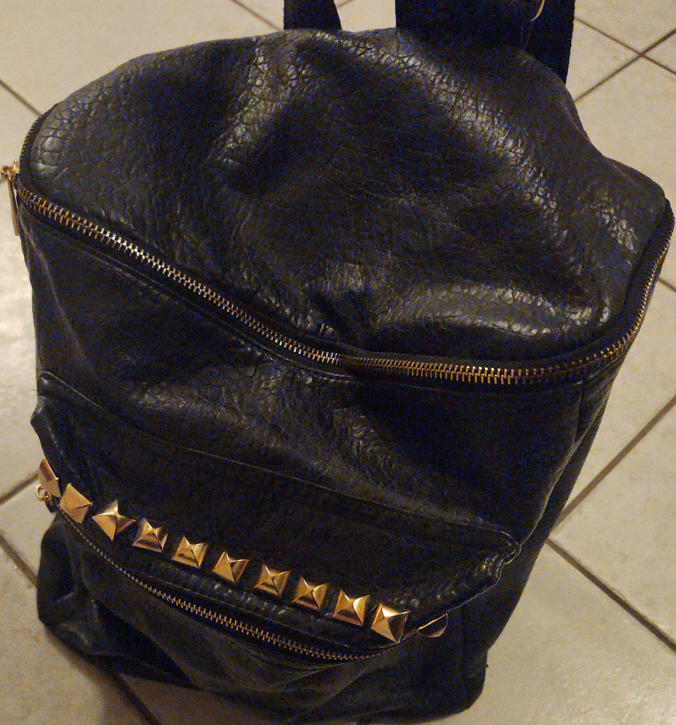 Selling a black backpack with gold-tone zippers and stud detailing. It's in great shape and ready for a new home!