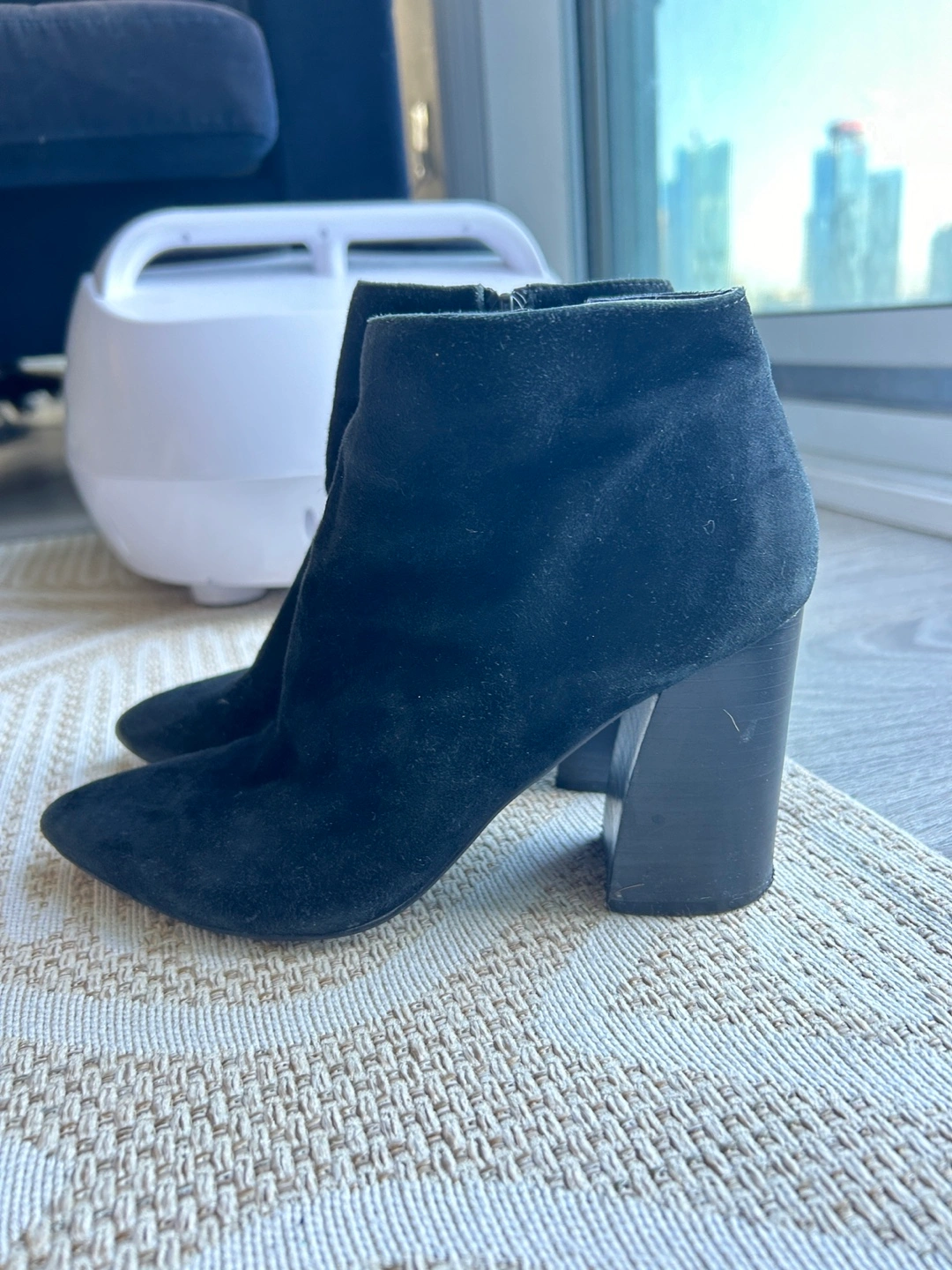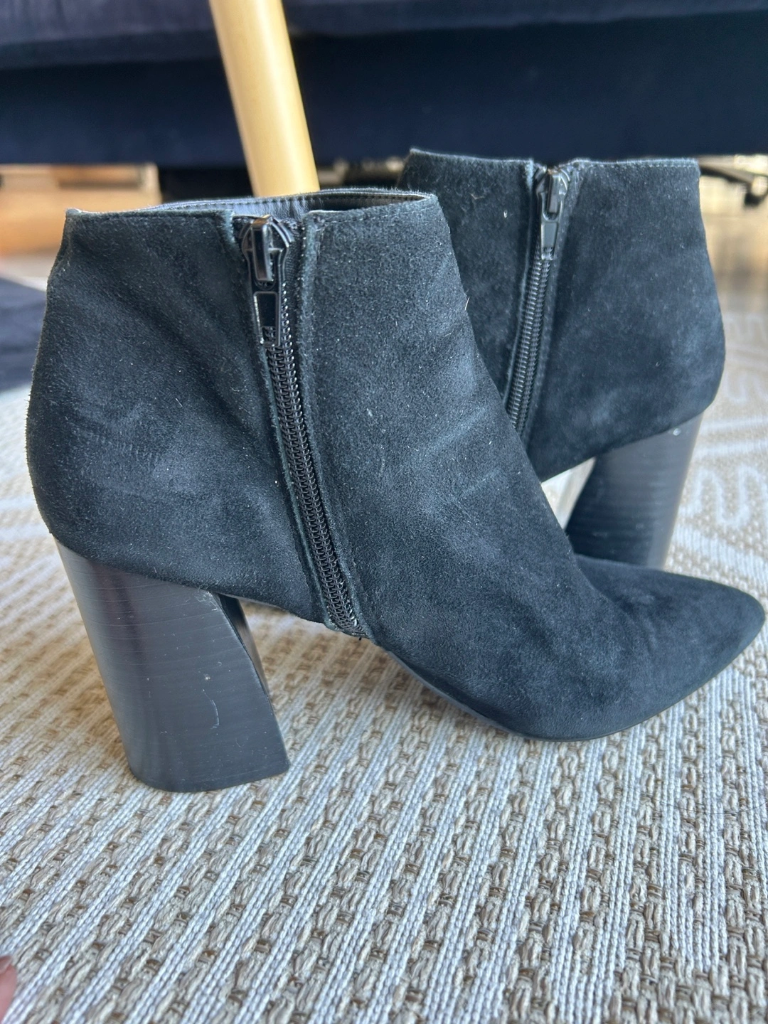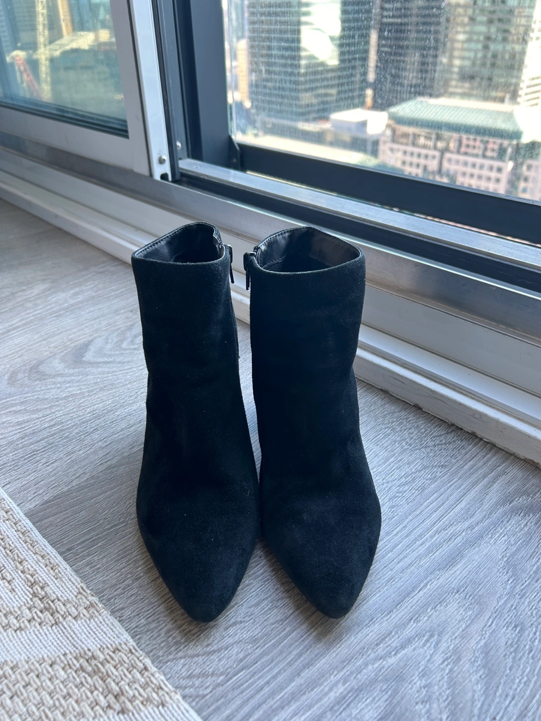 Selling a pair of black suede ankle socks boots. They're a size 7.5 and in great condition. Perfect for adding a bit of style to any outfit!