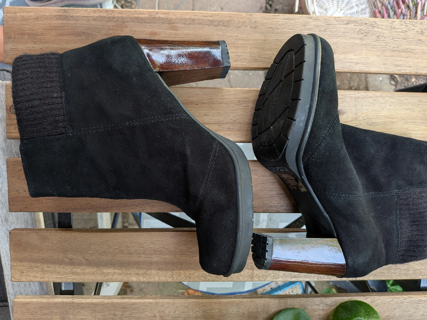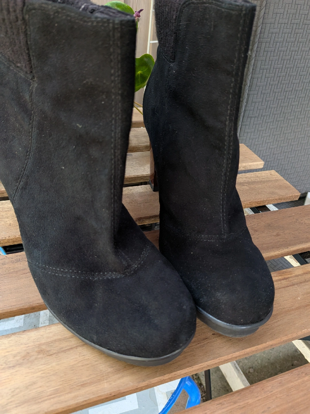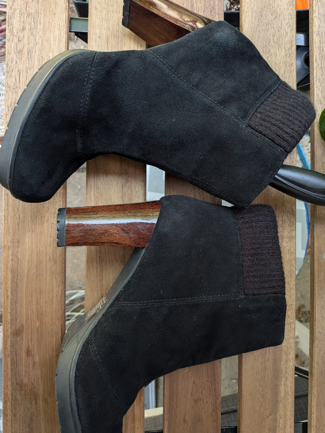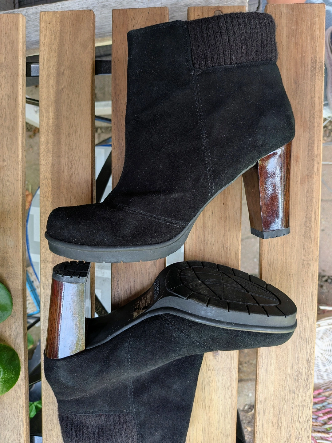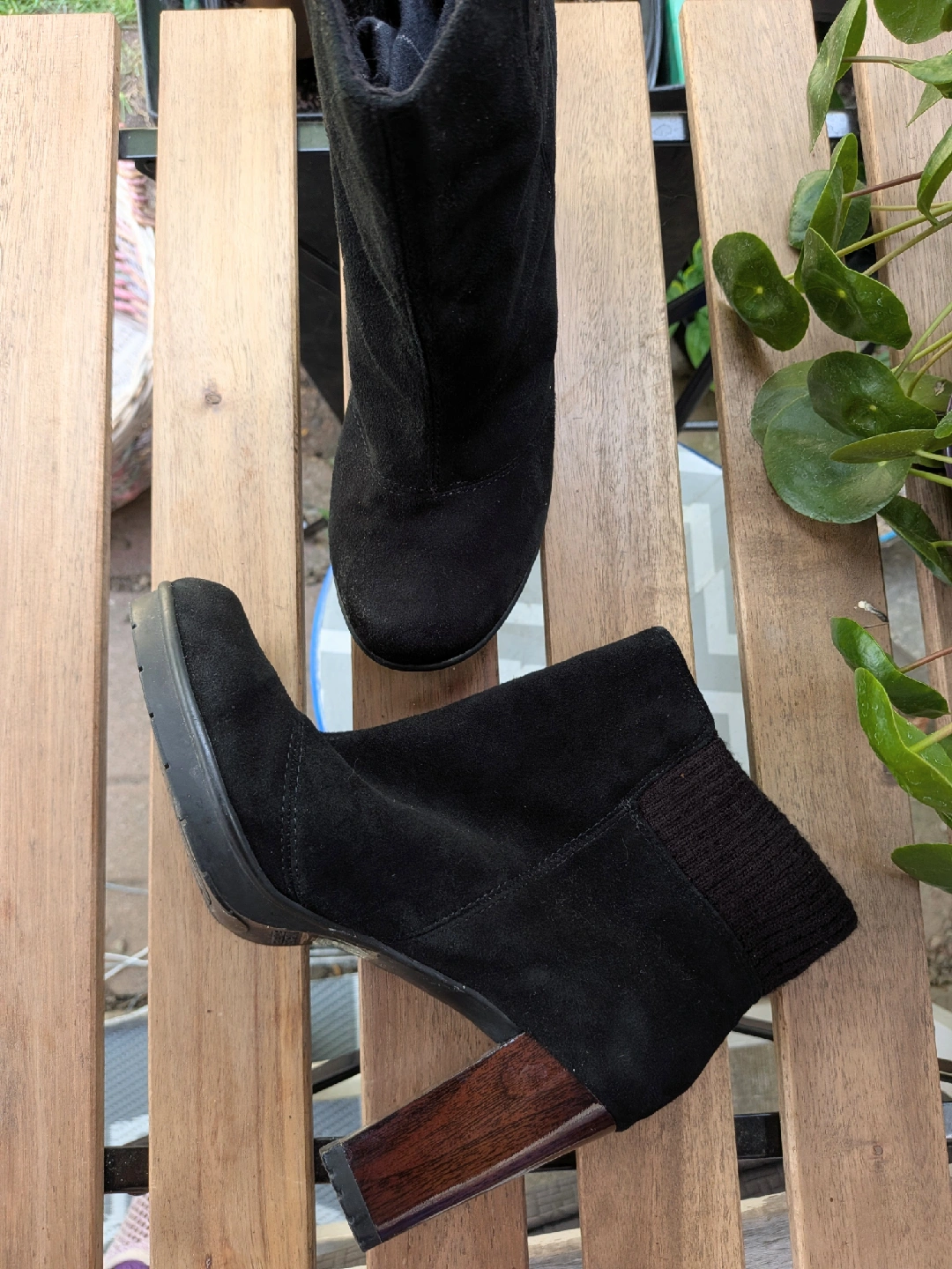 Selling a pair of stylish black suede ankle boots. They have a unique wood-look heel and a comfortable fit. These boots are in great condition and are a size 8. Perfect for adding a touch of elegance to any outfit! Wore only once, cannot wear heels anymore Excellent condition, no issues Cash only, no etransfers Location: Etobicoke. Rathburn and Renforth