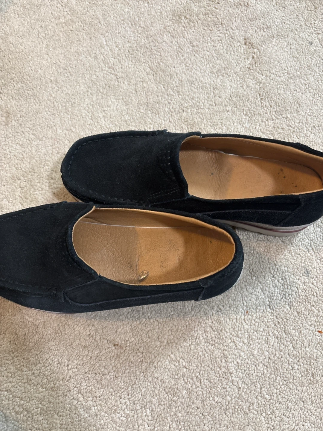 Selling a pair of black suede platform loafers. They are in great condition and are a size 8 Perfect for adding a little height and style to your everyday look!