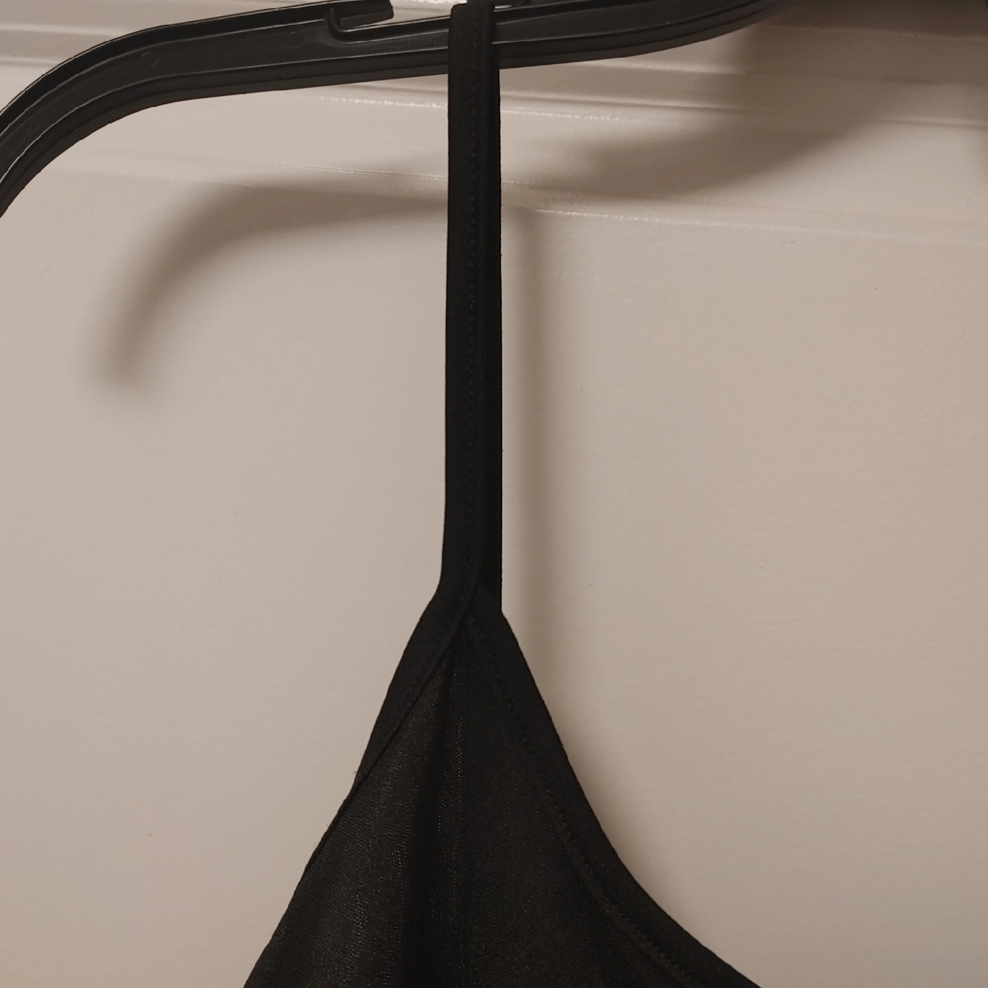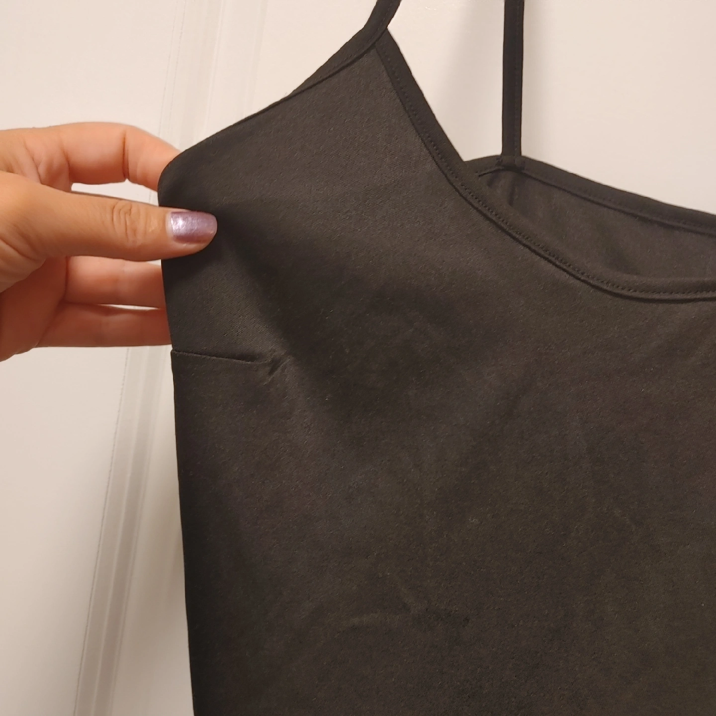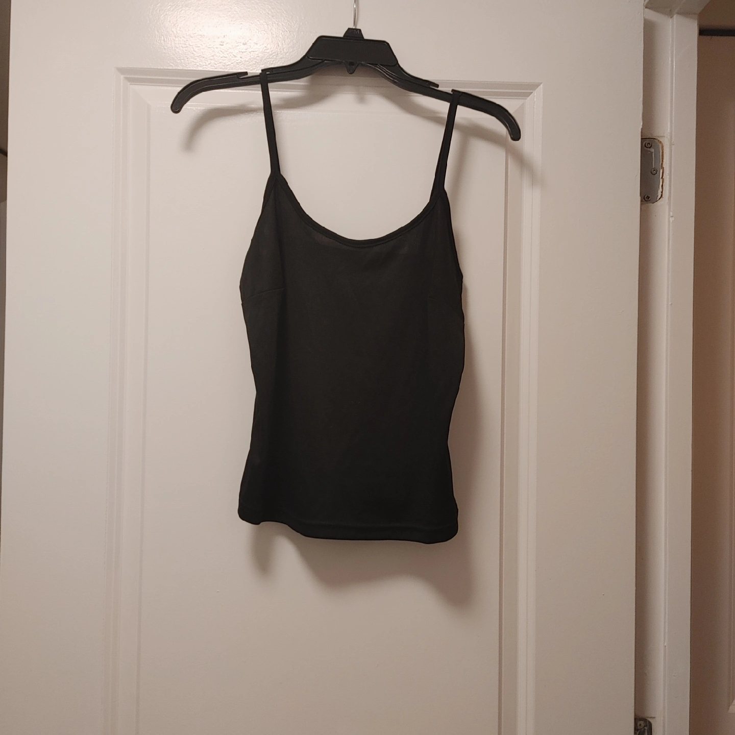 A simple black tank top with straps. Great for layering or wearing on its own! It's in good condition and ready for a new home