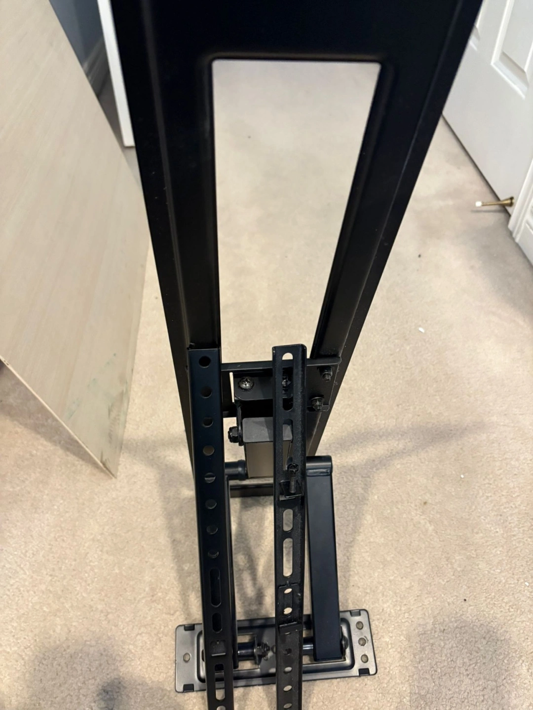 Selling a sturdy black TV wall mount bracket. It's in great condition and ready to be installed. Perfect for mounting your TV securely and saving space