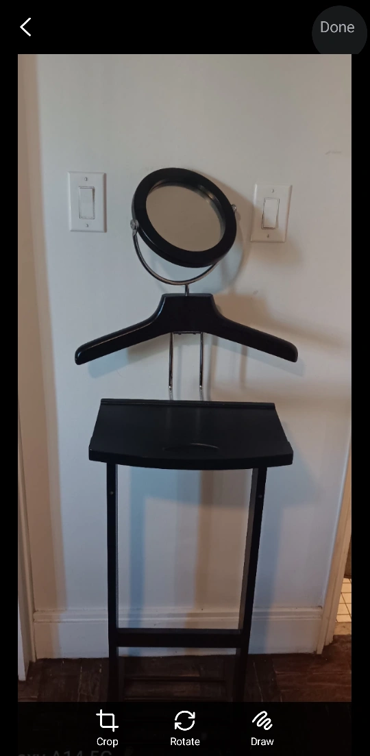Looking to keep your clothes organized? This black valet stand could be just what you need! It features a hanger, a small shelf, and a mirror to help you get ready in the morning Yorkville area 647-203-0411