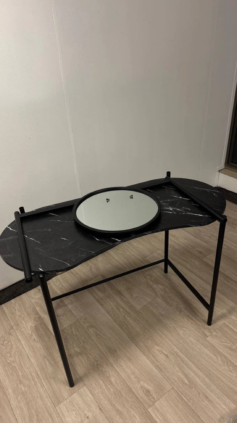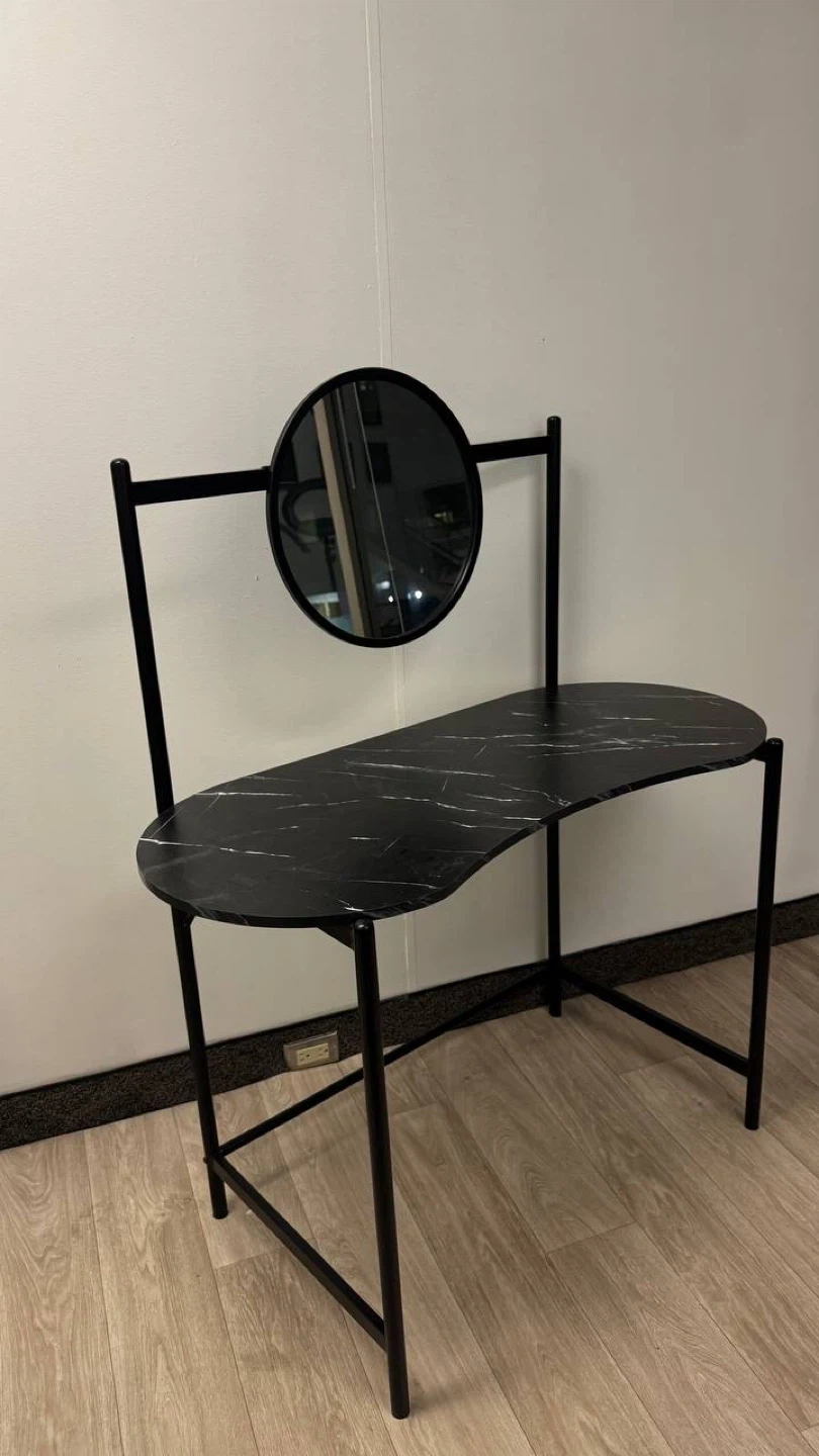 Selling a stylish black vanity/desk with a round mirror. The table has a sleek modern design with a marble-look top. ✨ Excellent condition – no damage ✨ Easy to assemble/disassemble ✨ Used only for 2 months Perfect for makeup, studying, or as a decorative accent piece. 65 cad