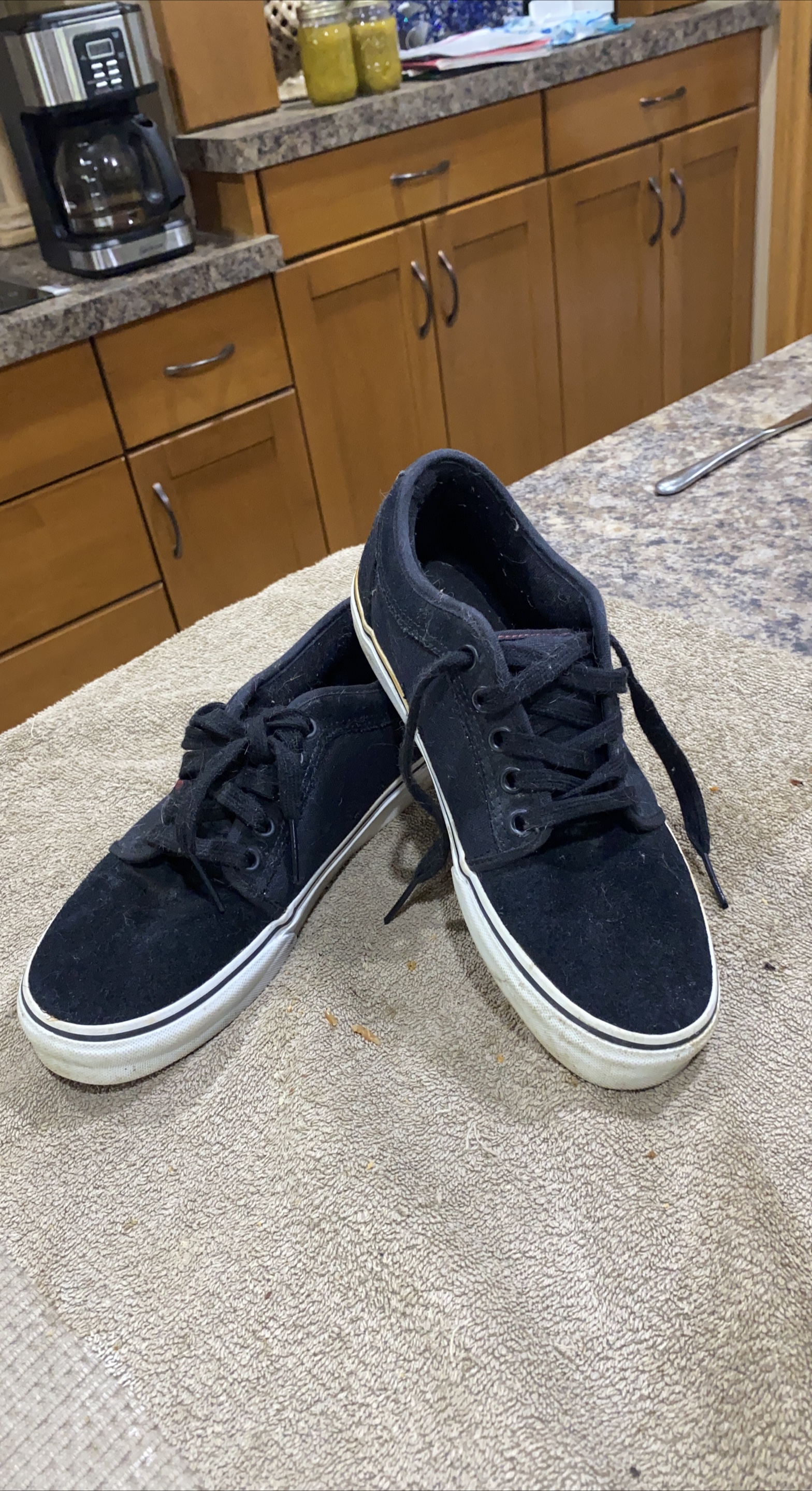 Selling a pair of black Vans shoes. They are in good condition, as you can see from the photos