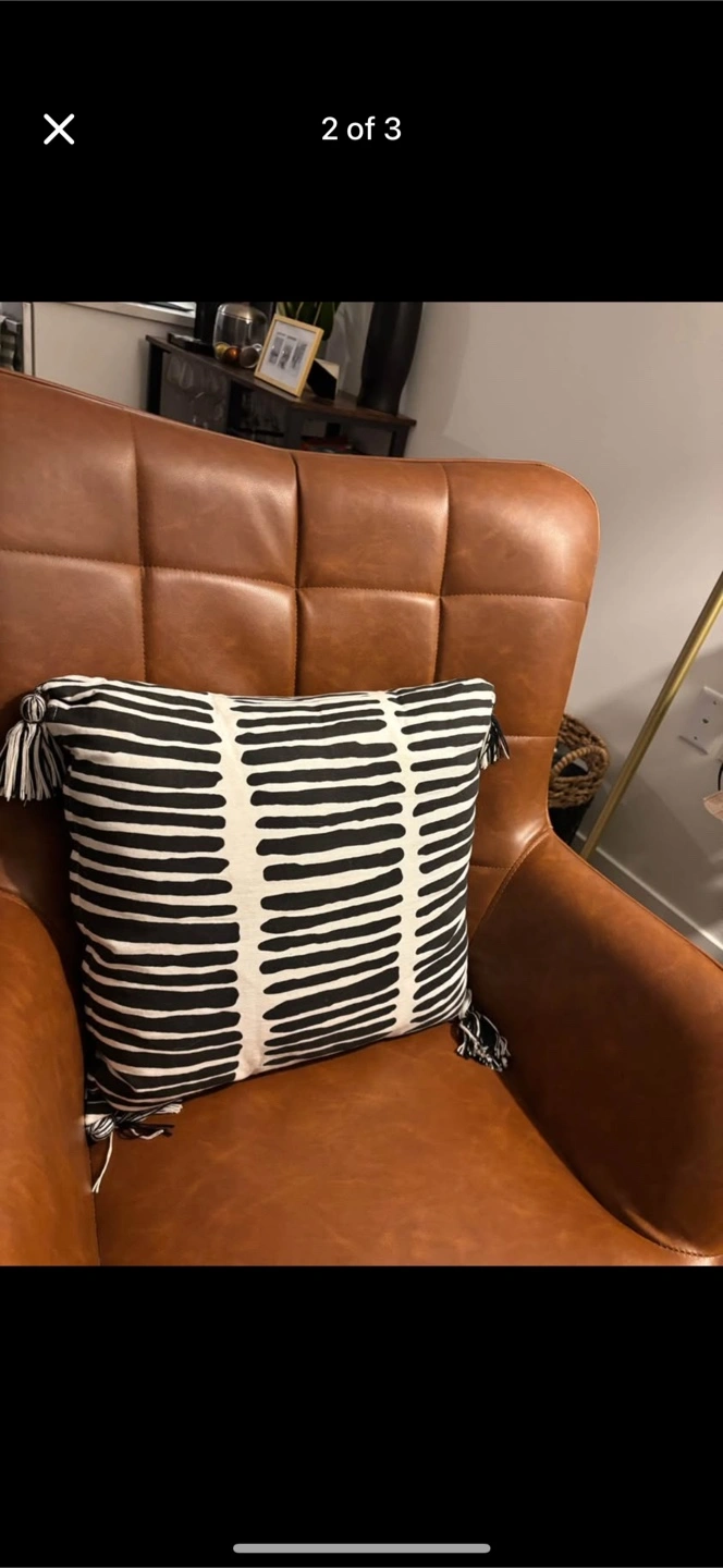 Here's a decorative pillow with a cool black and white pattern! It's in great shape and would look awesome on a chair or couch