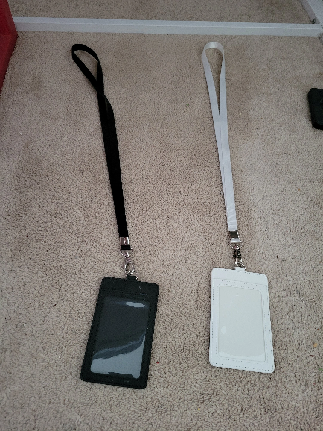 Selling a set of two lanyard ID card holders! One is black and the other is white. Perfect for work or school to keep your ID visible and accessible