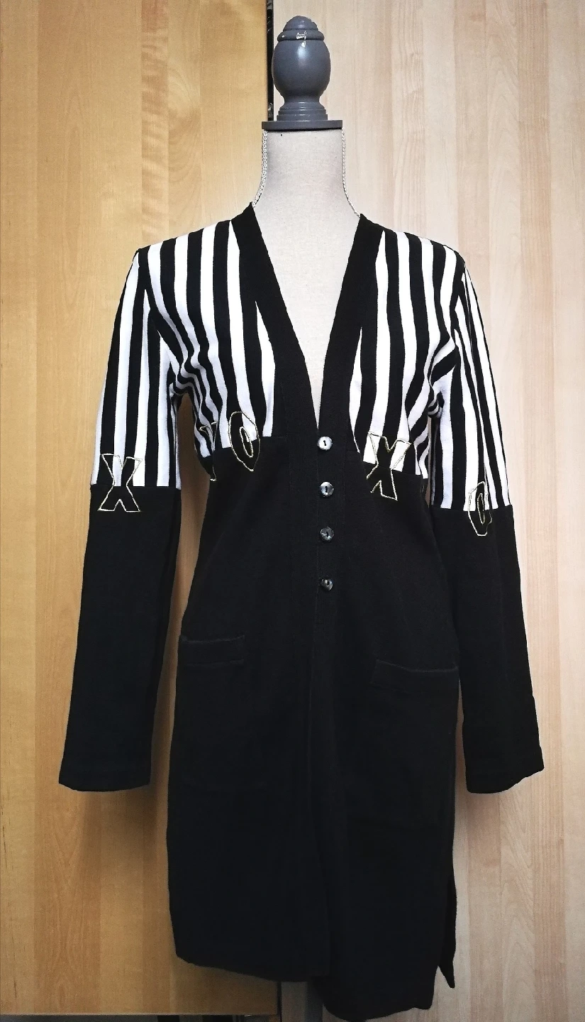 Black & white striped long cardigan, made with 100% cotton, there's split on the side Size 36, fits S-M pick up in downtown close to St Patrick station, Dundas-University area
